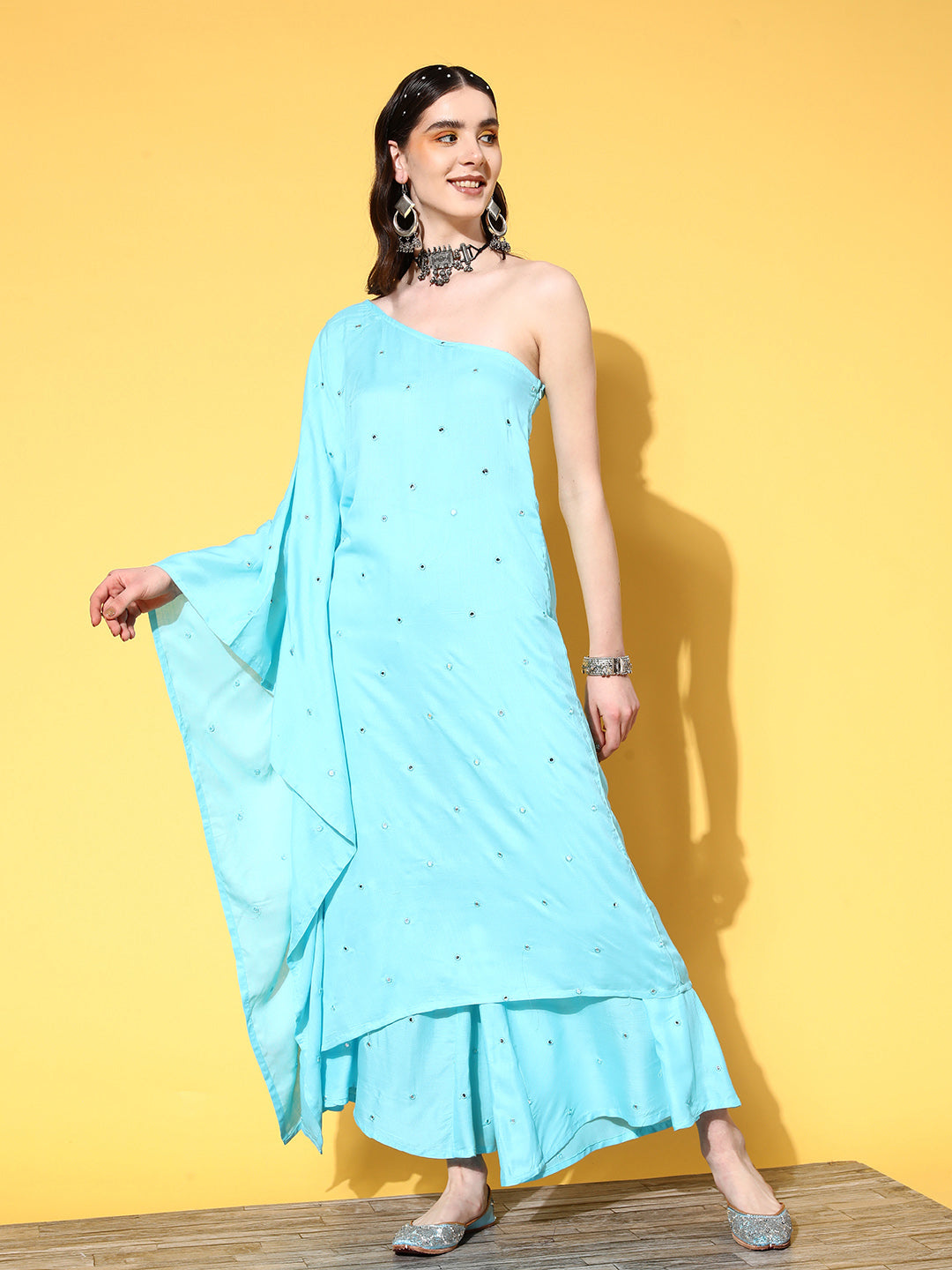 The Set is crafted from best of Indian fabrics. Style it with Oxidised jewelery and juttis and you are good to go for any outing Hand Wash Only Seperately.