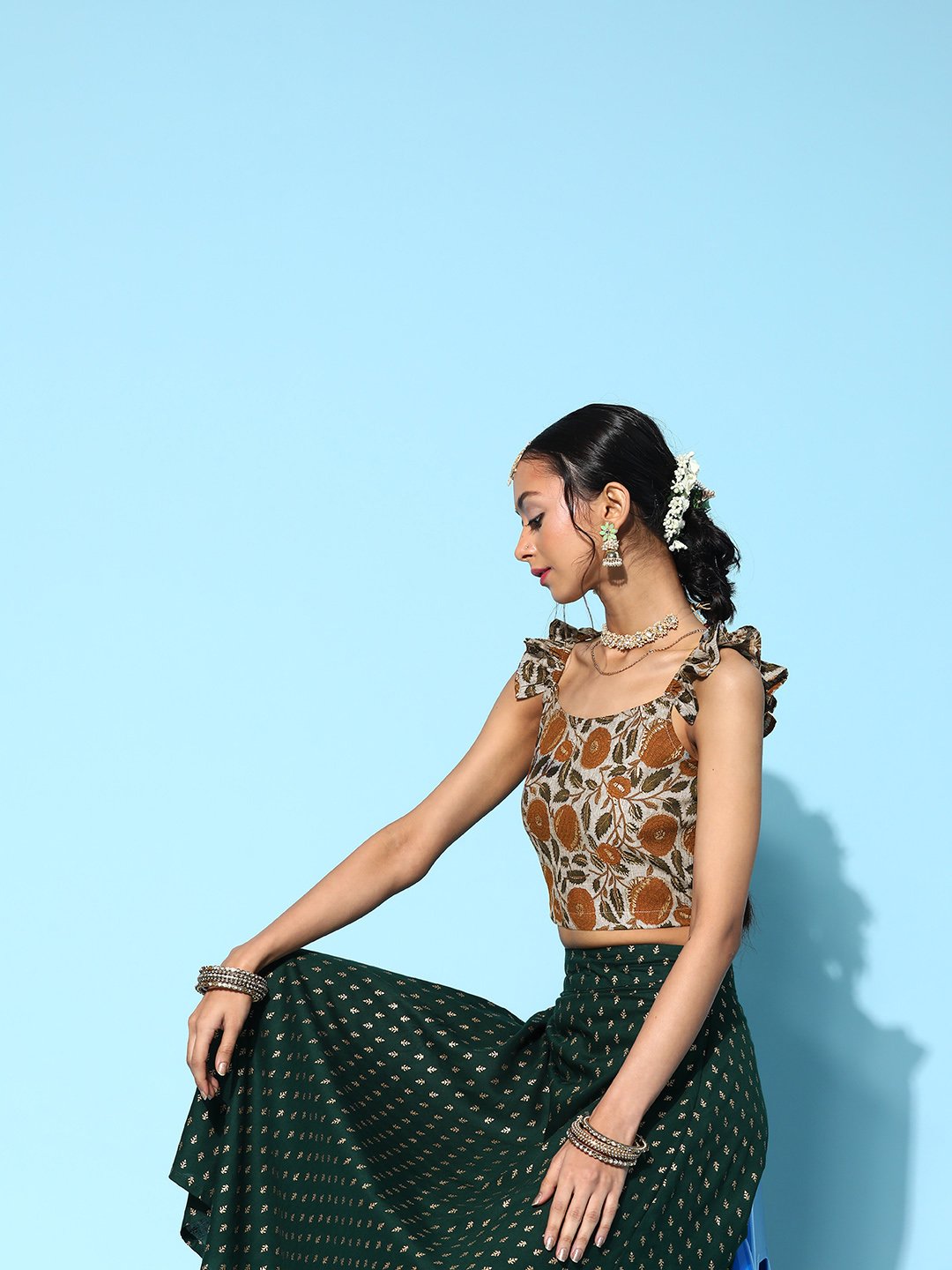 Be the centre of attention when you wear this stylish clothing set. It includes a lovely printed top and printed skirt. Fabric used : Viscose Rayon. Fabric used for Lower : Viscose Rayon. Hand Wash Separately