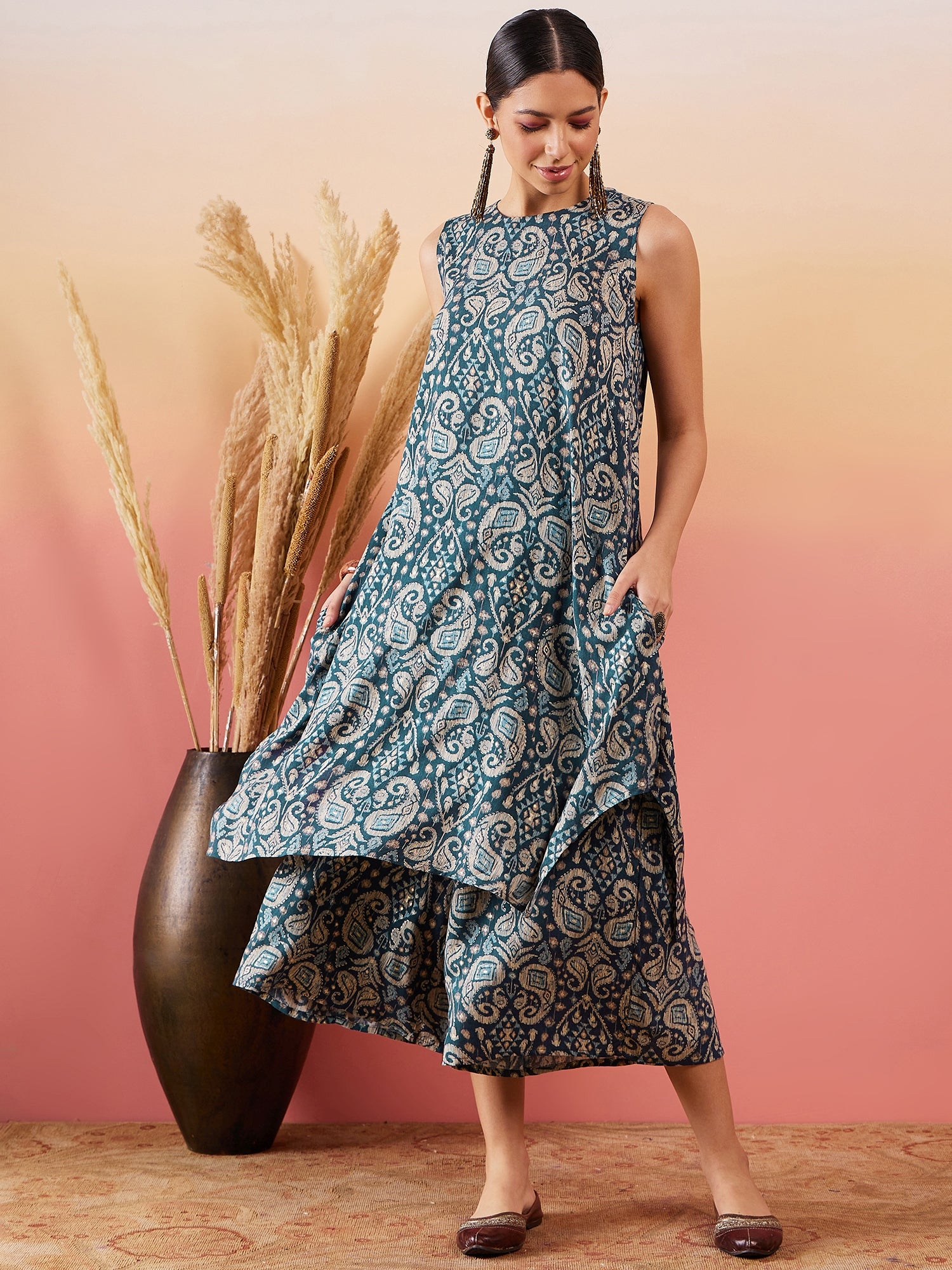 Get a perfect look for any traditional occasion with this kurta and pant set from InWeave. Light up any occasion with this exclusive set.