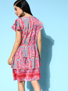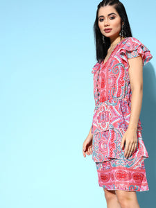Comfy and stylish, InWeave this dress is ideal for your casual closet. It is tailored with an ethnic motifs print and V-neck to lend you a lovely silhouette. Hand Wash Only Seperately.