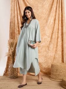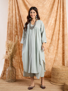 Steel Blue Flared Kurta Set