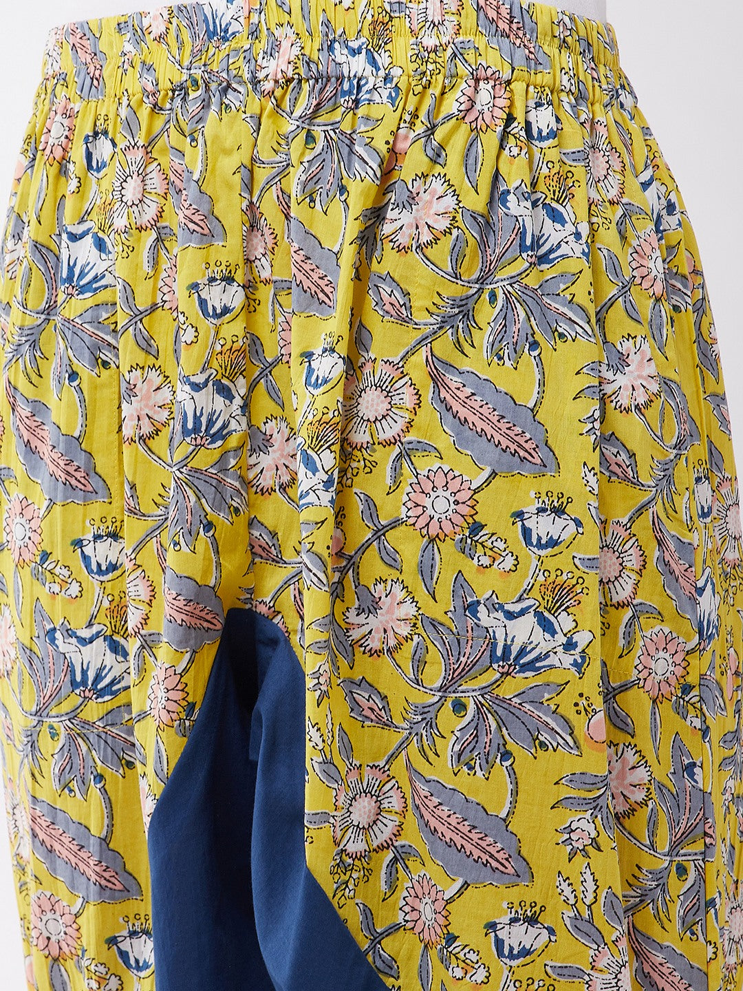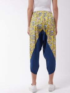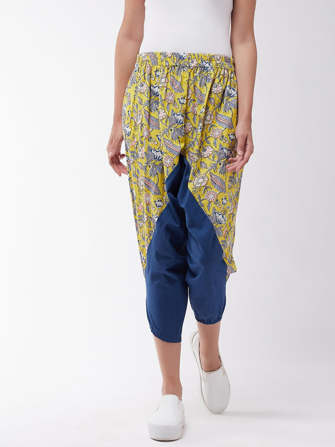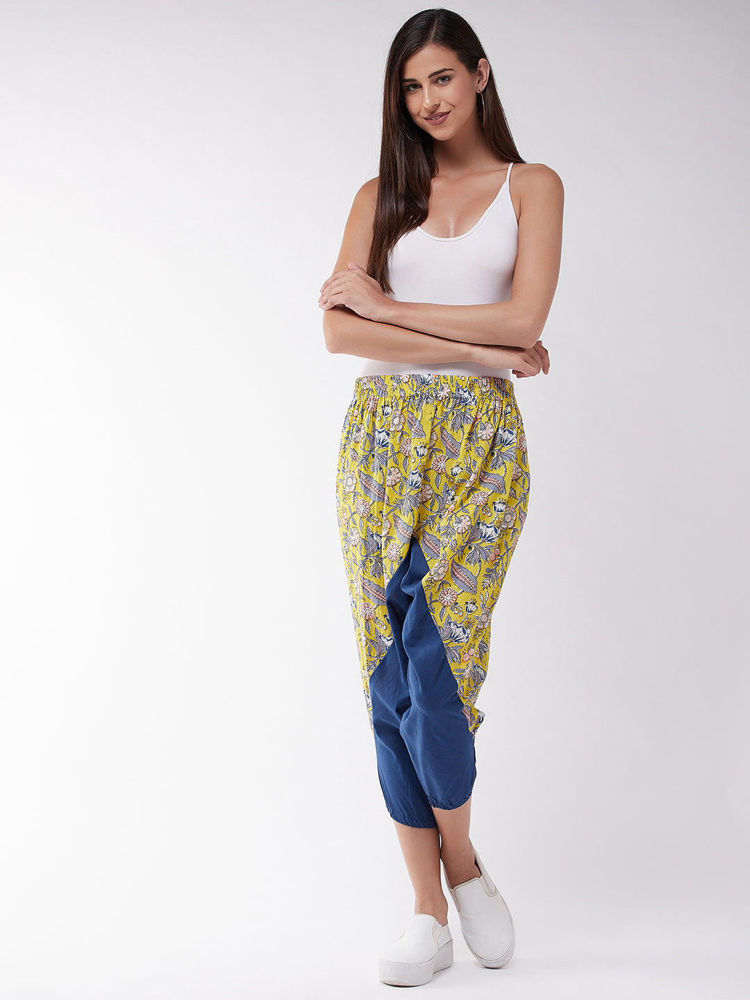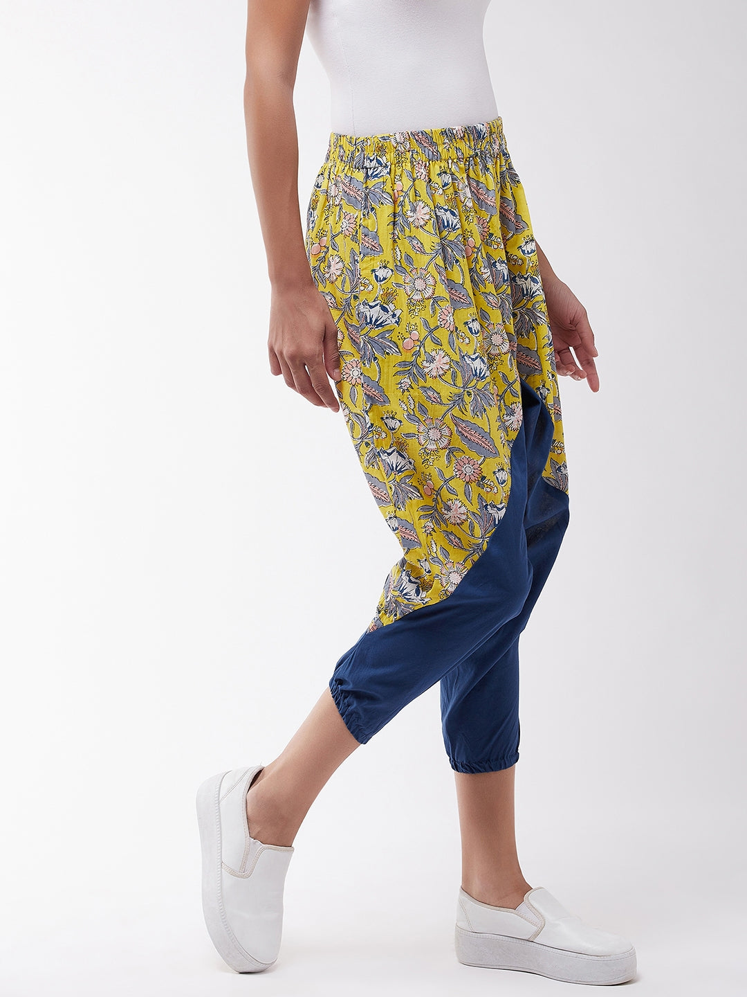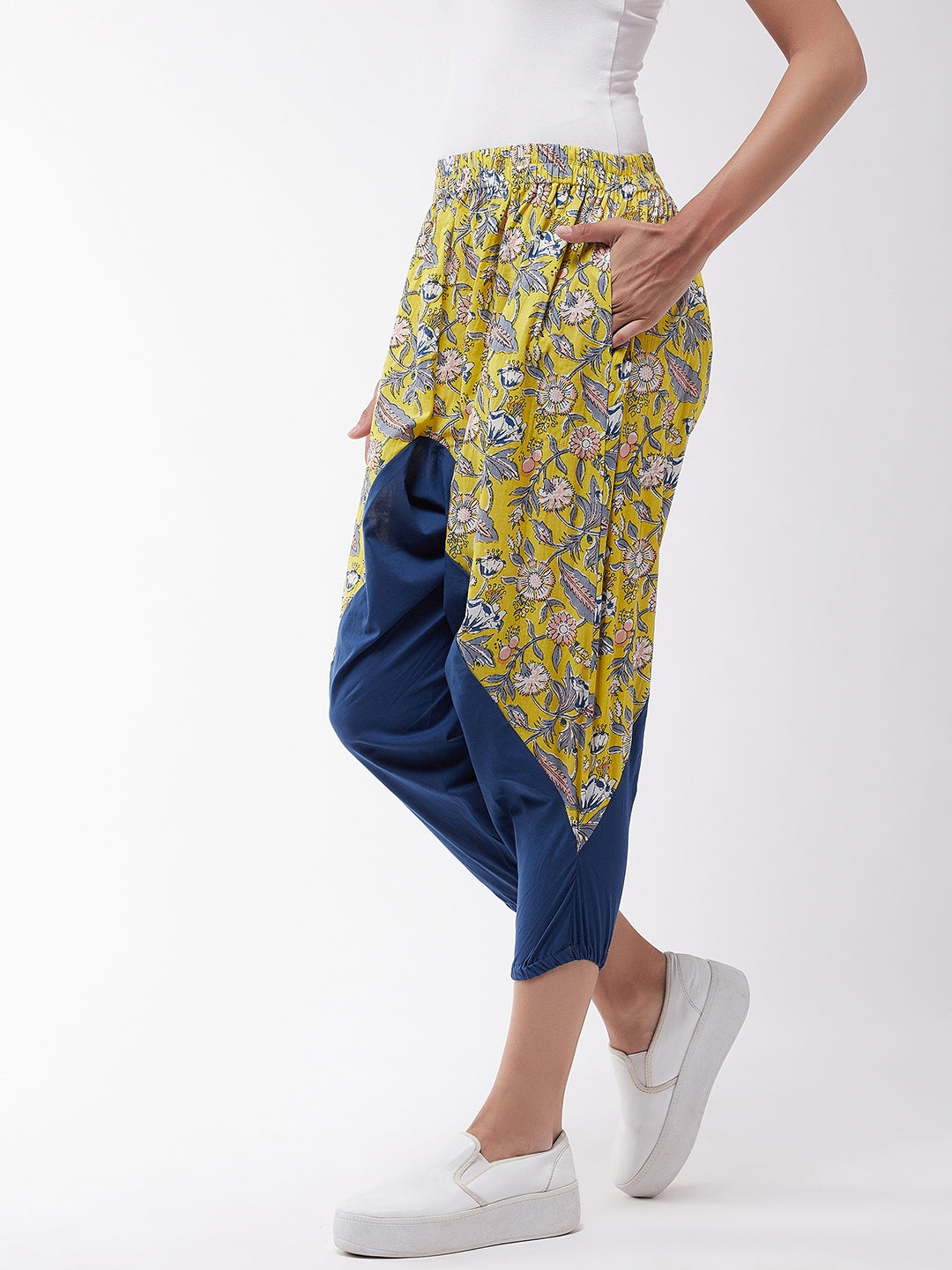 Yellow and Blue Floral Printed straight-fit mid-rise harem pants, have an elasticated waistband with slip-on closure, two pockets. These harem pants from InWeave will make a unique addition to your bottom wear collection. Experiment treating it up with t-shirt, tops.