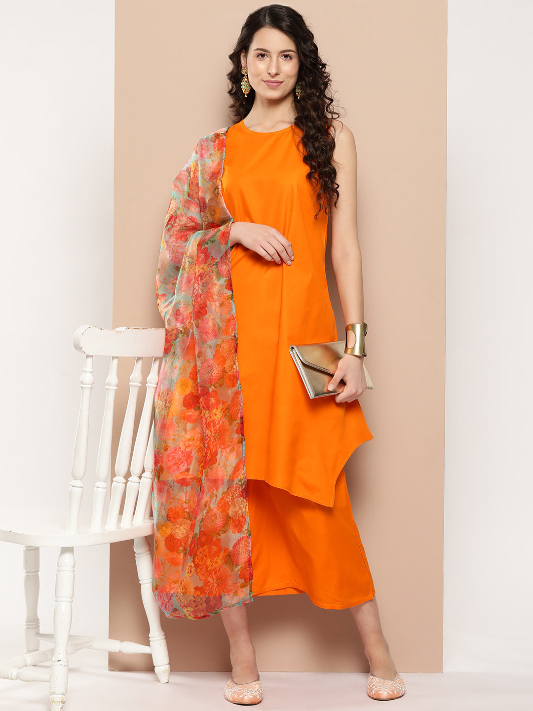 The Set is crafted from best of Indian fabrics. Style it with Oxidised jewelery and juttis and you are good to go for any outing Hand Wash Only Seperately.
