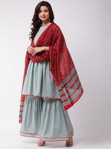 Dupatta, if any, has a length of 225 cms / 2.25 m / 88.5 inches. Width is 107 cms / 42 inches