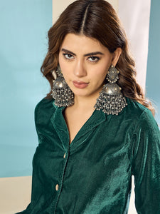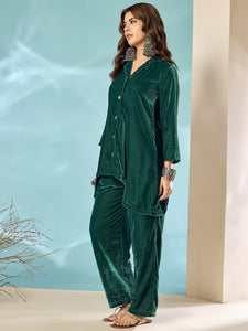 Placeholder Teal Green Velvet Blazzer Coord Set - InWeave