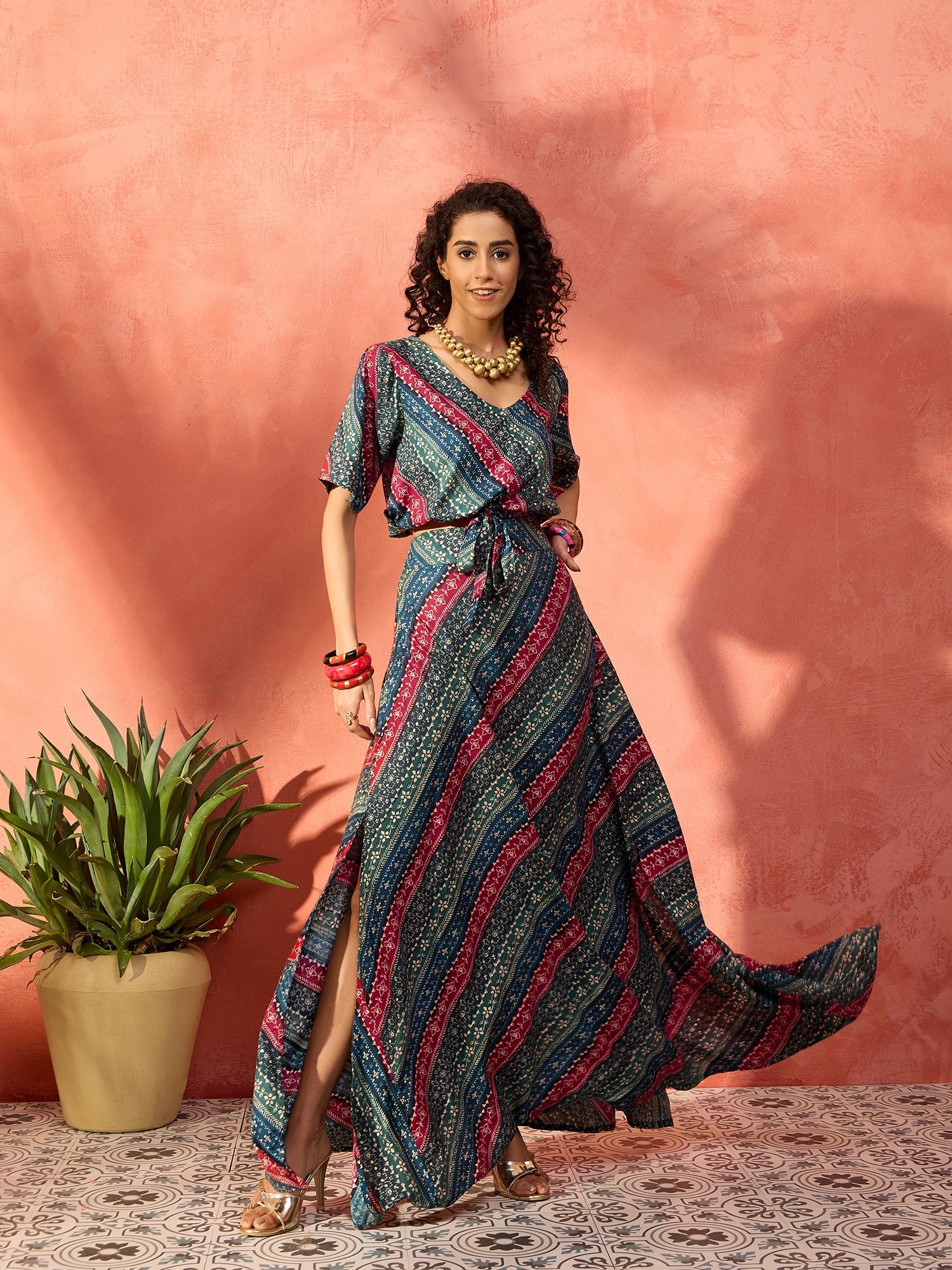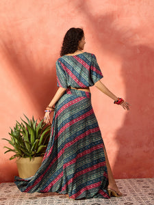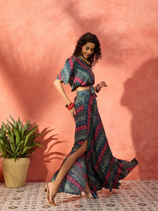 The Dress is crafted from best of Indian fabrics. Style it with Oxidised jewelery and juttis and you are good to go for any outing Hand Wash Only Seperately.