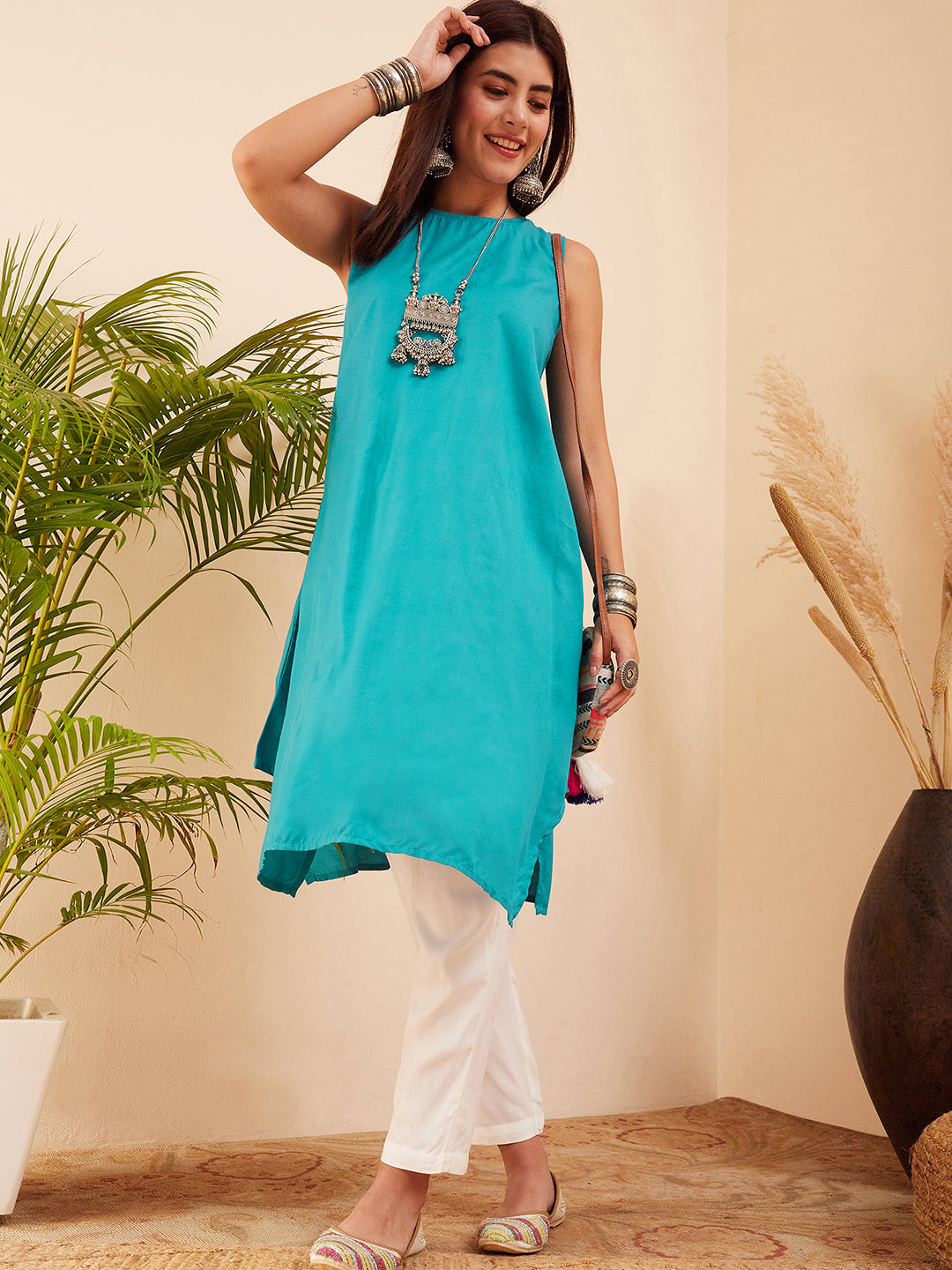 The Kurta is crafted from best of Indian fabrics. Style it with Oxidised jewelery and juttis and you are good to go for any outing Hand Wash Only Seperately.