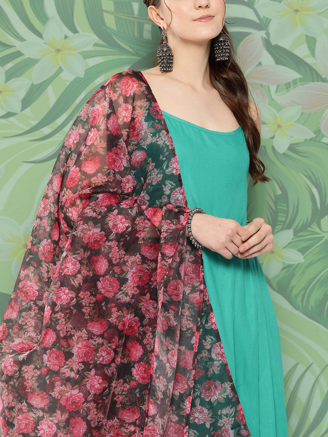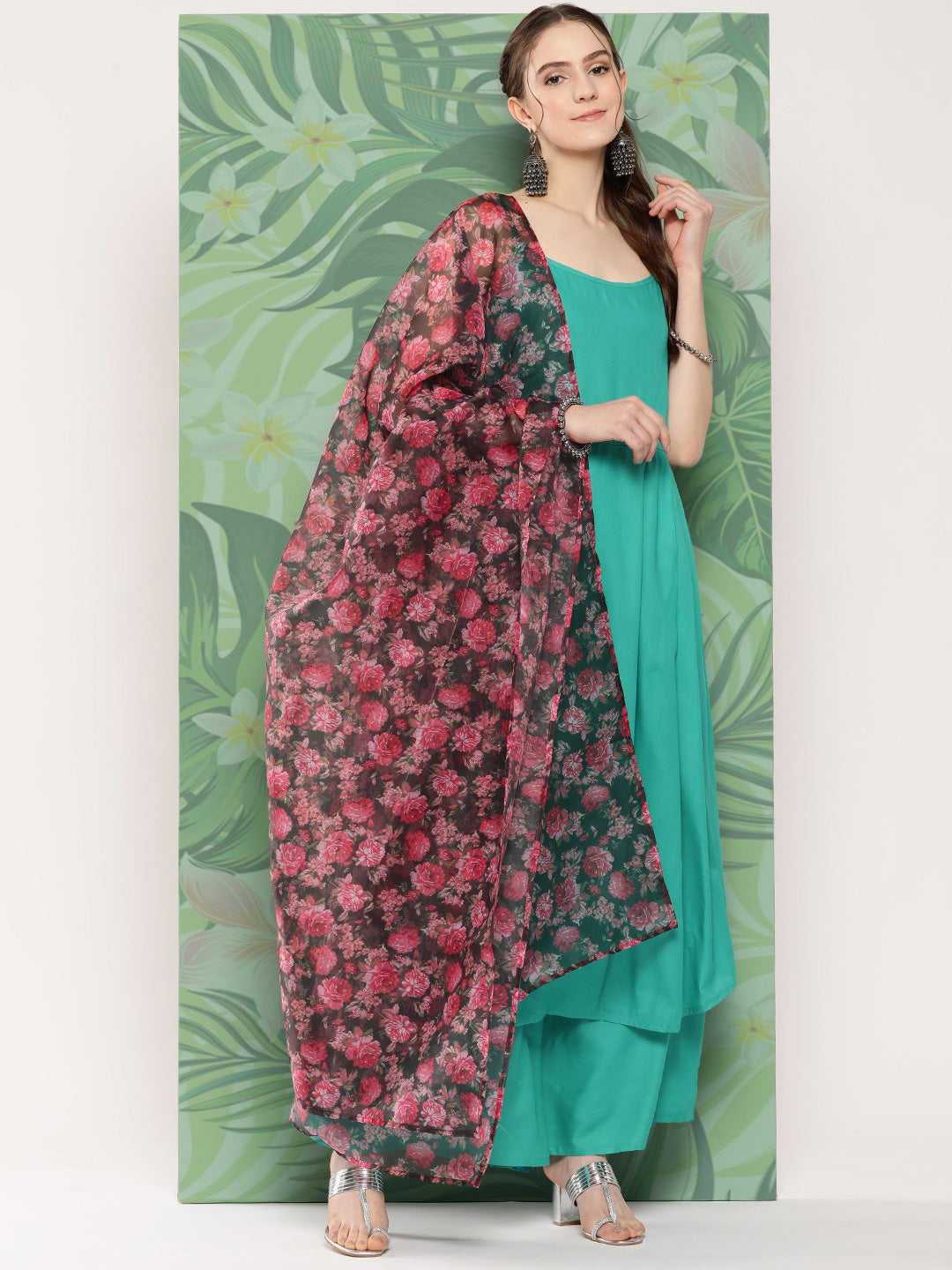 The Set is crafted from best of Indian fabrics. Style it with Oxidised jewelery and juttis and you are good to go for any outing Hand Wash Only Seperately.