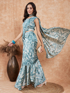 Nothing compares to the grace and elegance of wearing a Skirt Saree. This beautifully crafted Saree adds modernism to it and makes it nothing sort of a piece of art. Hand Wash Only Separately.