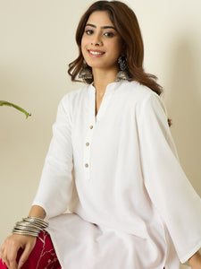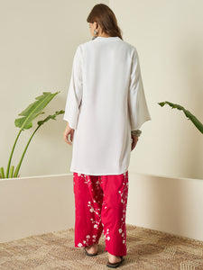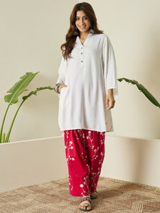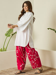White Kurta Fuchsia Floral Salwar Set