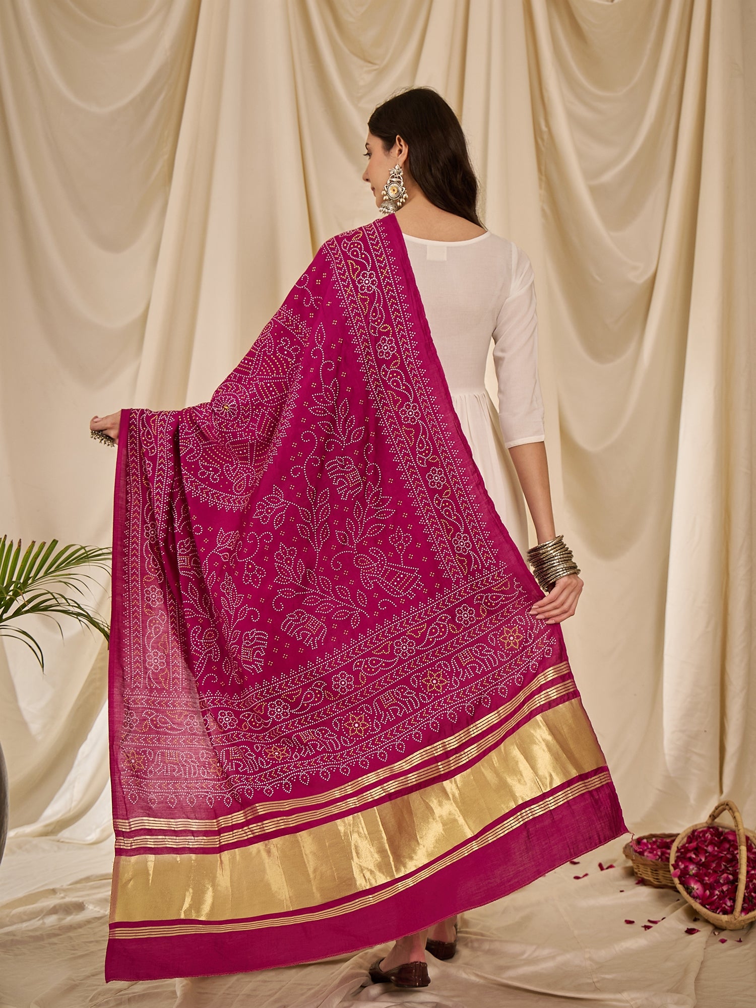 Dupatta, if any, has a length of 225 cms / 2.25 m / 88.5 inches. Width is 107 cms / 42 inches