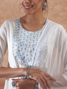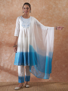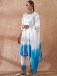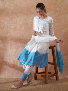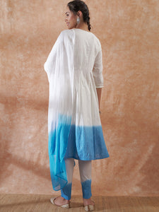 White Lurex Blue Dye Patch Gota Anarkali Kurta Set W Dupatta