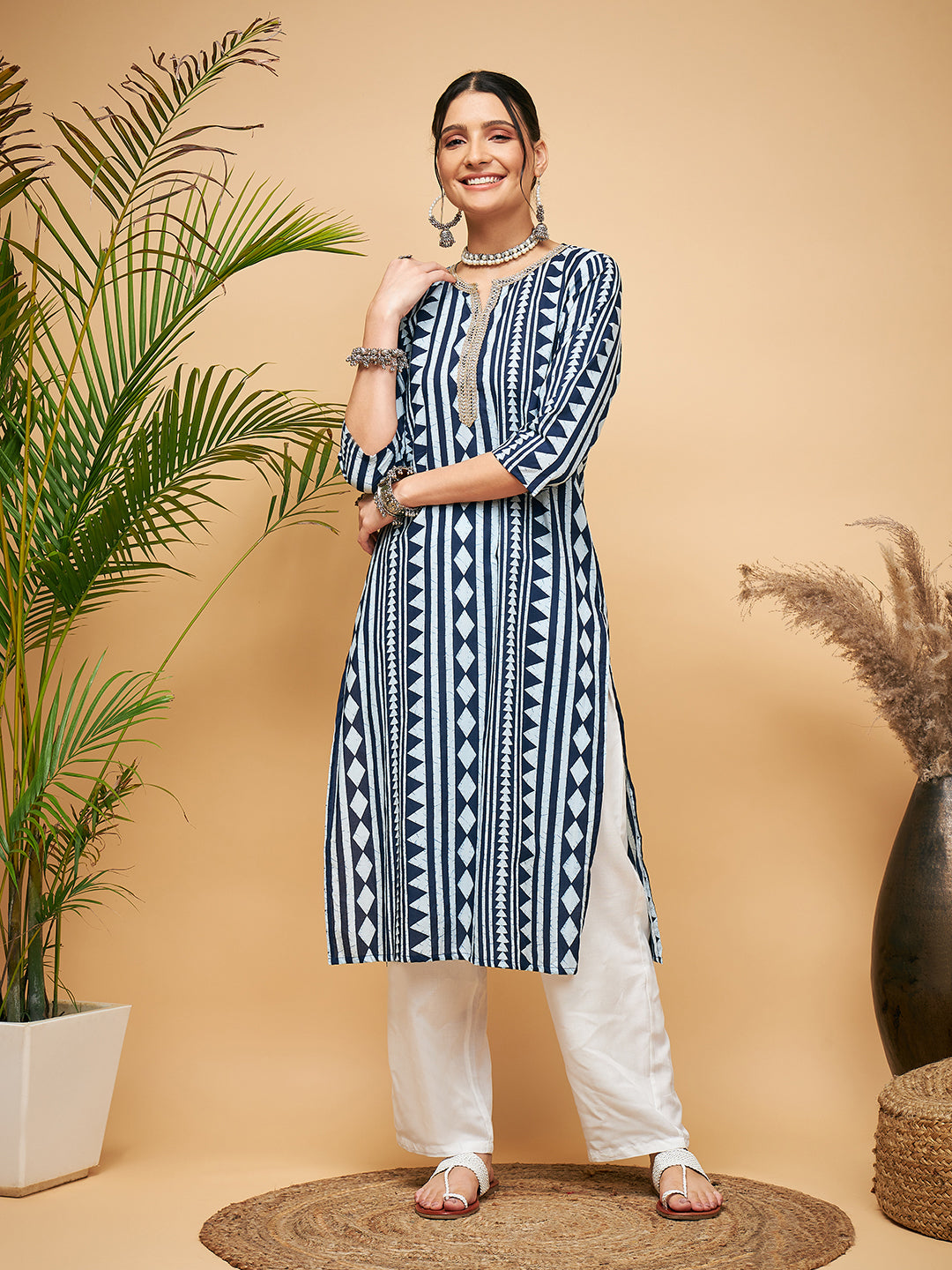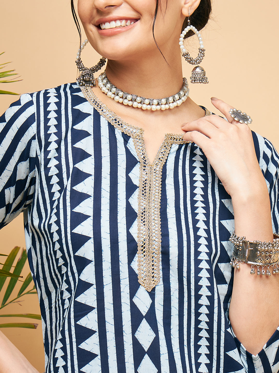 The Set is crafted from best of Indian fabrics. Style it with Oxidised jewelery and juttis and you are good to go for any outing Hand Wash Only Seperately.