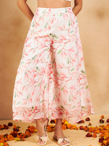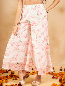 Thanks to the premium fabric and intricate designing, this pair White Printed Organza palazzos is high bet to stay in vogue. Complement these women palazzos with cap sleeves tops.