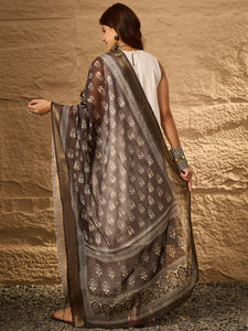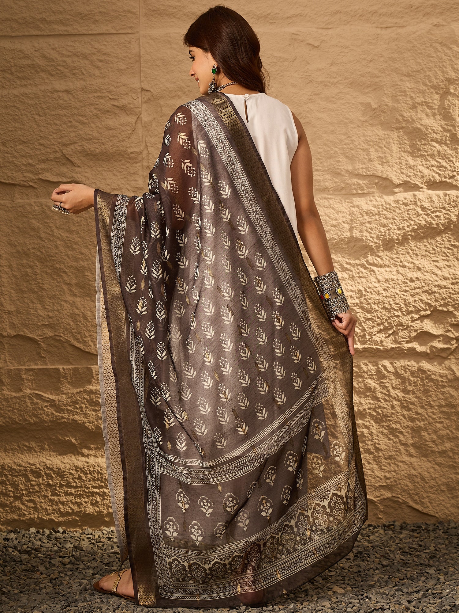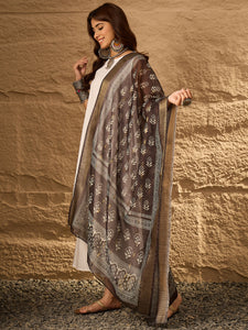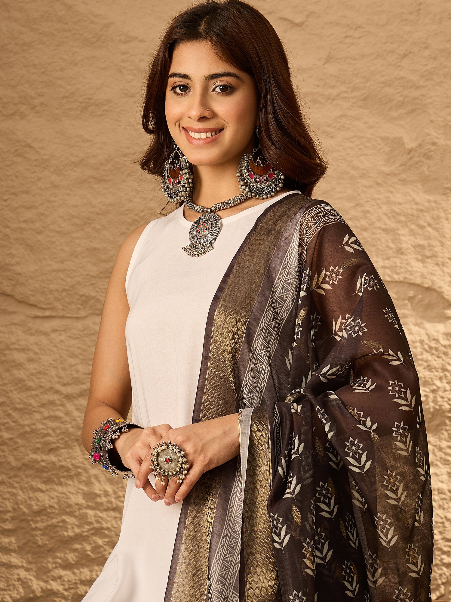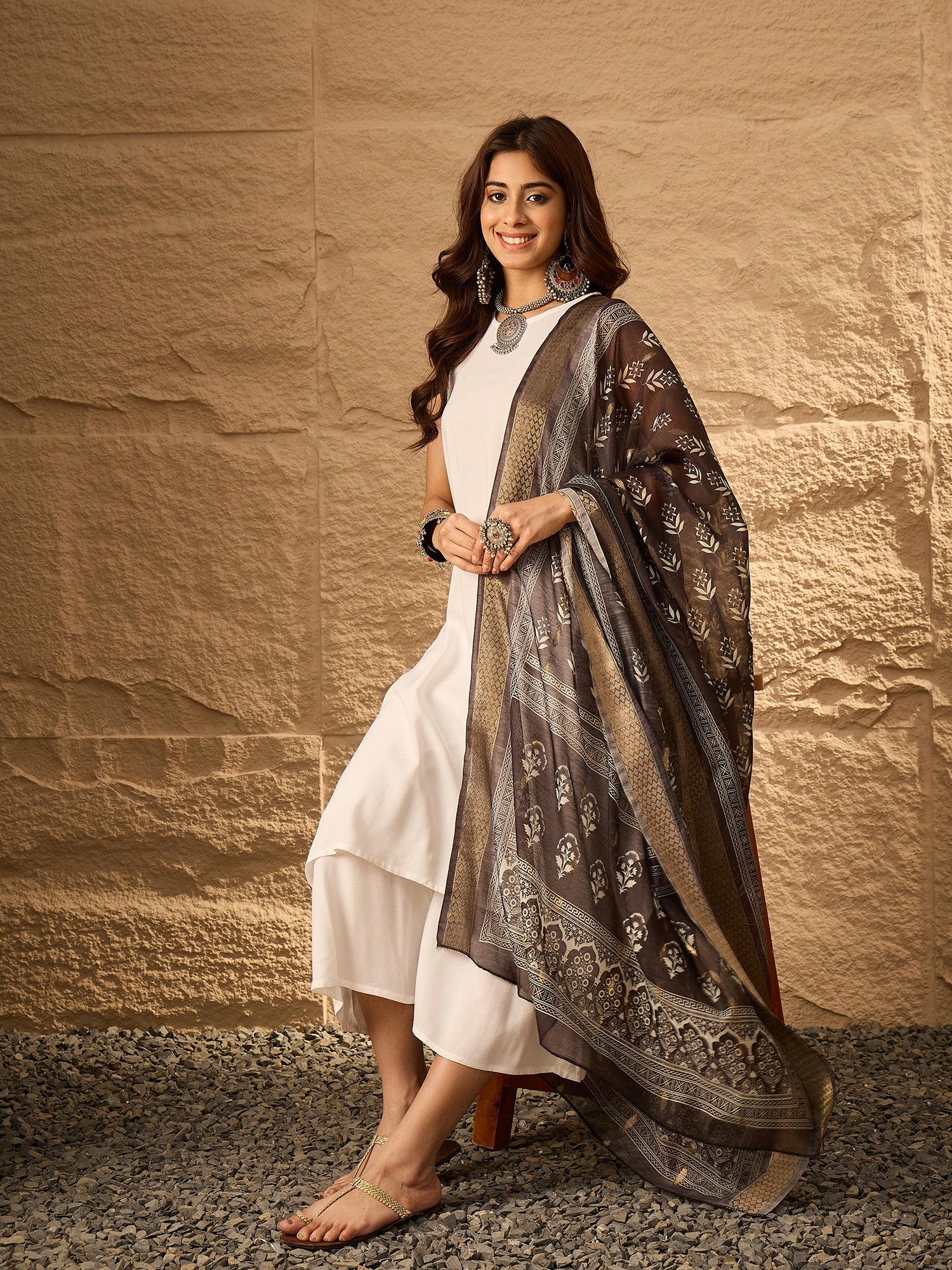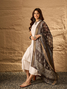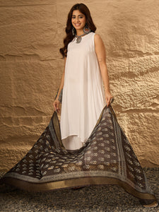 Placeholder White Round Neck Black Beige Dupatta Kurta Set - InWeave