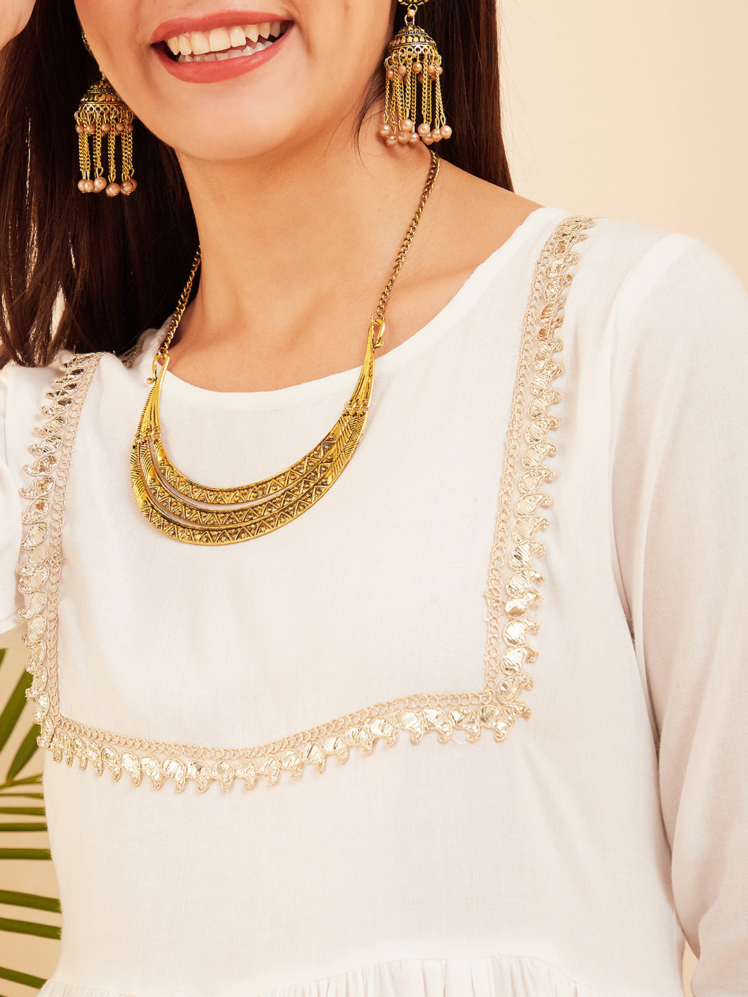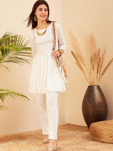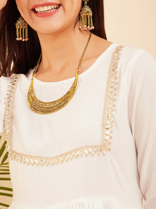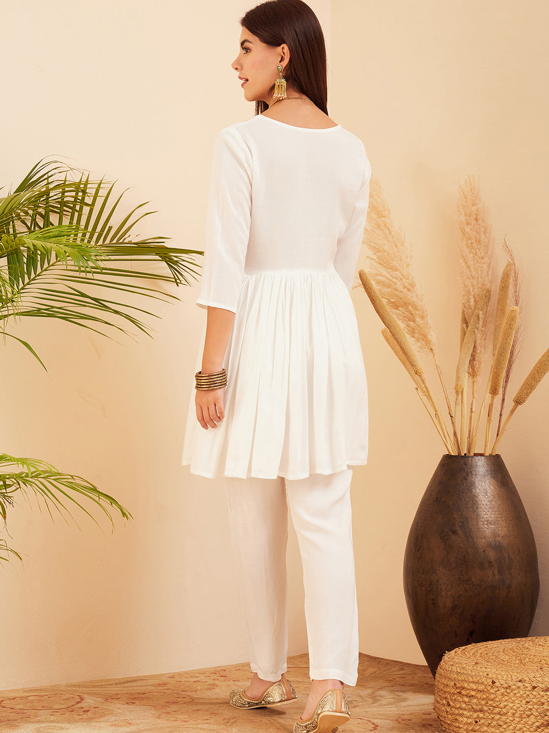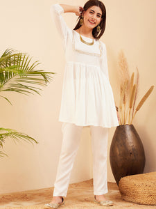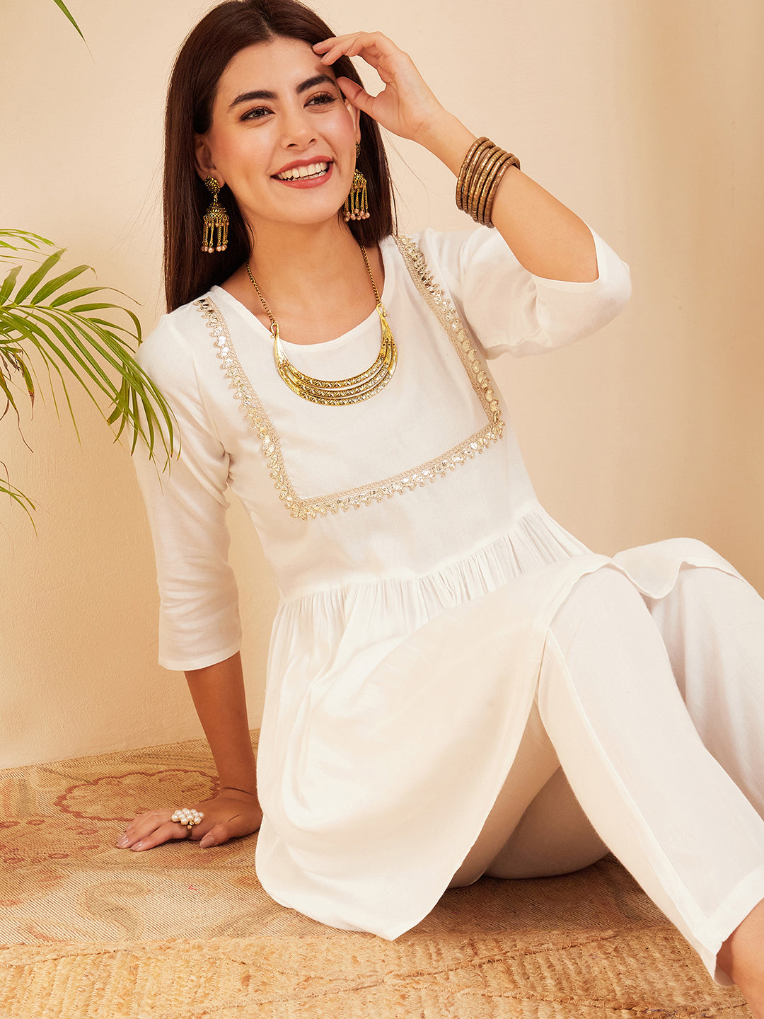 Placeholder White Round Neck Square Gota Work Kurta Pant Set - InWeave