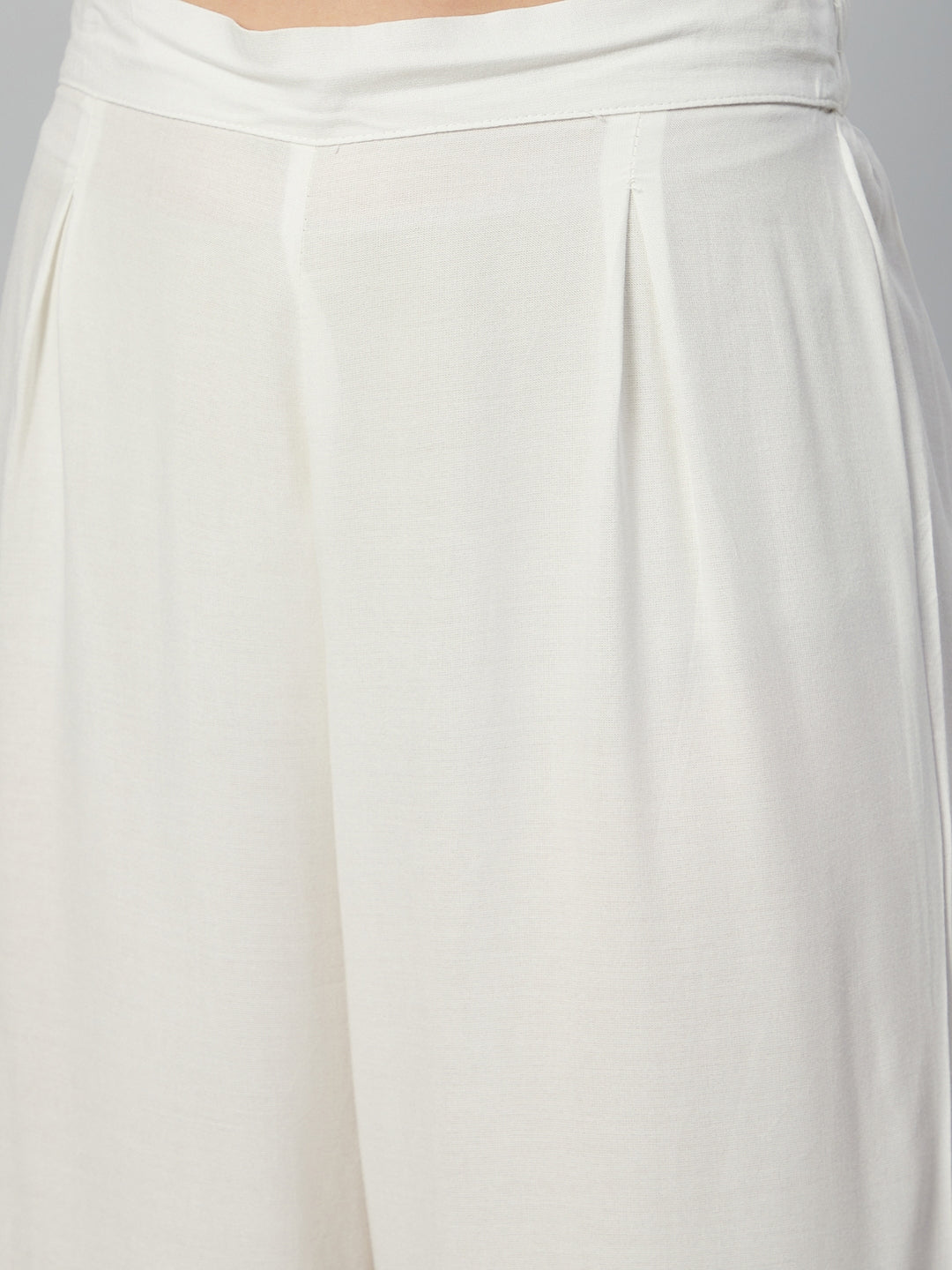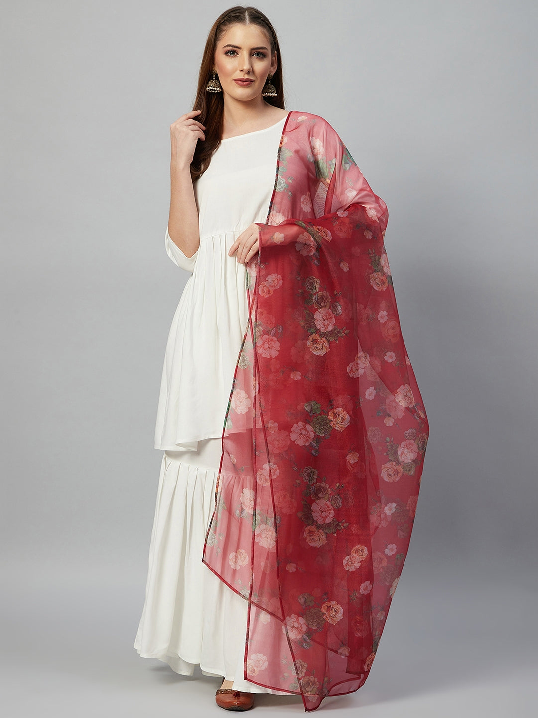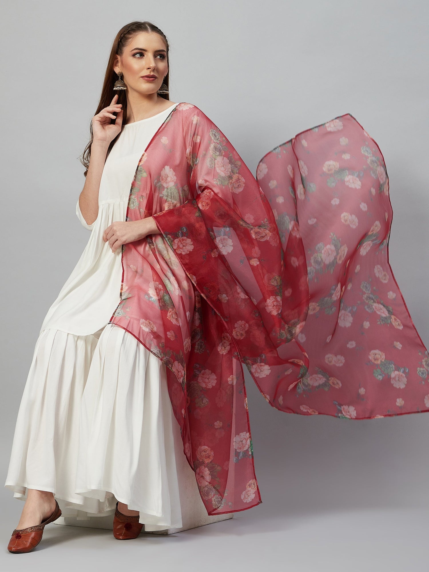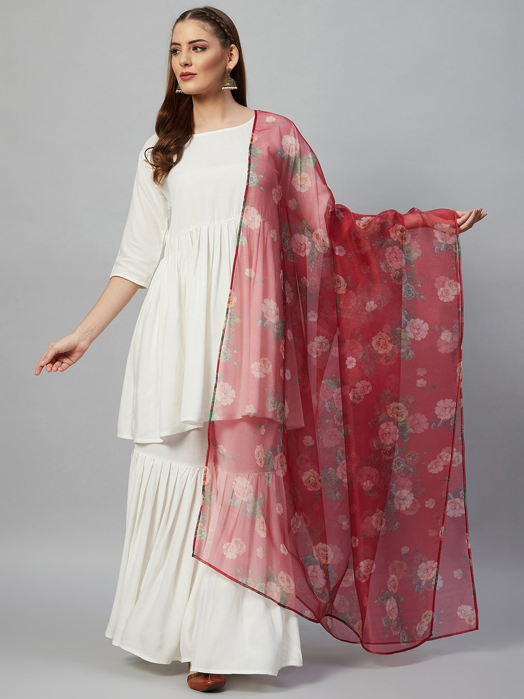 Placeholder White Sharara Set - Maroon Organza Dupatta - InWeave