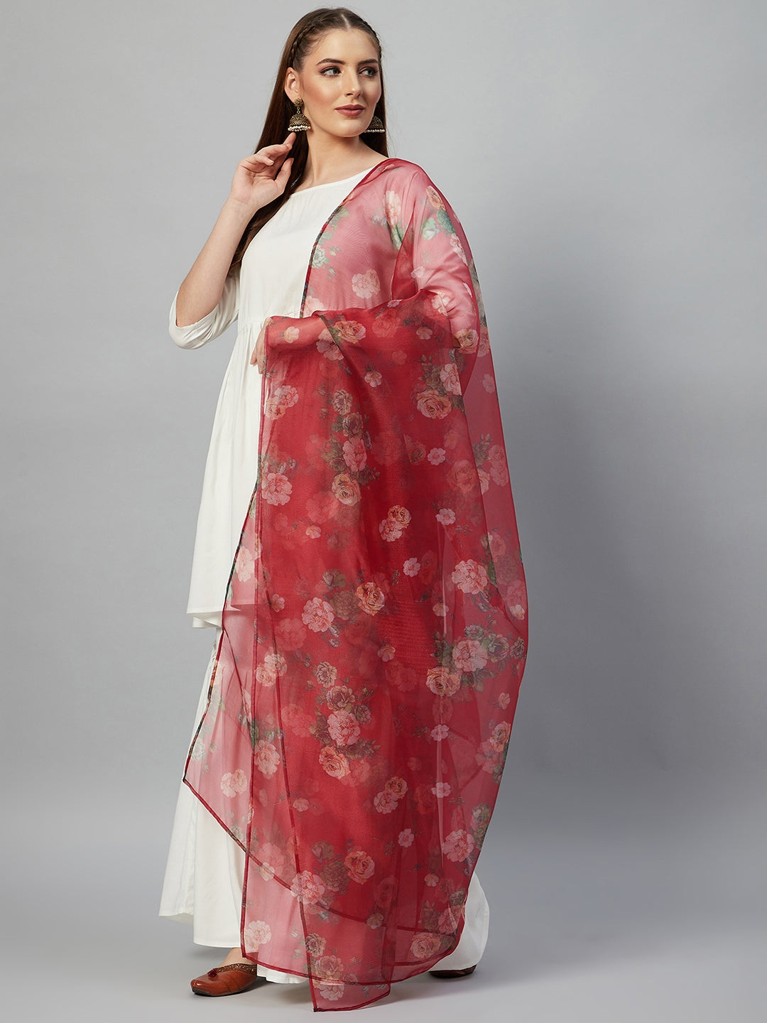 Dupatta, if any, has a length of 225 cms / 2.25 m / 88.5 inches.  Width is 107 cms / 42 inches