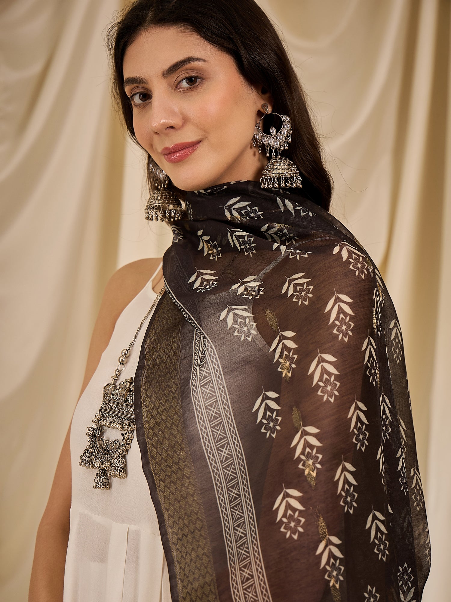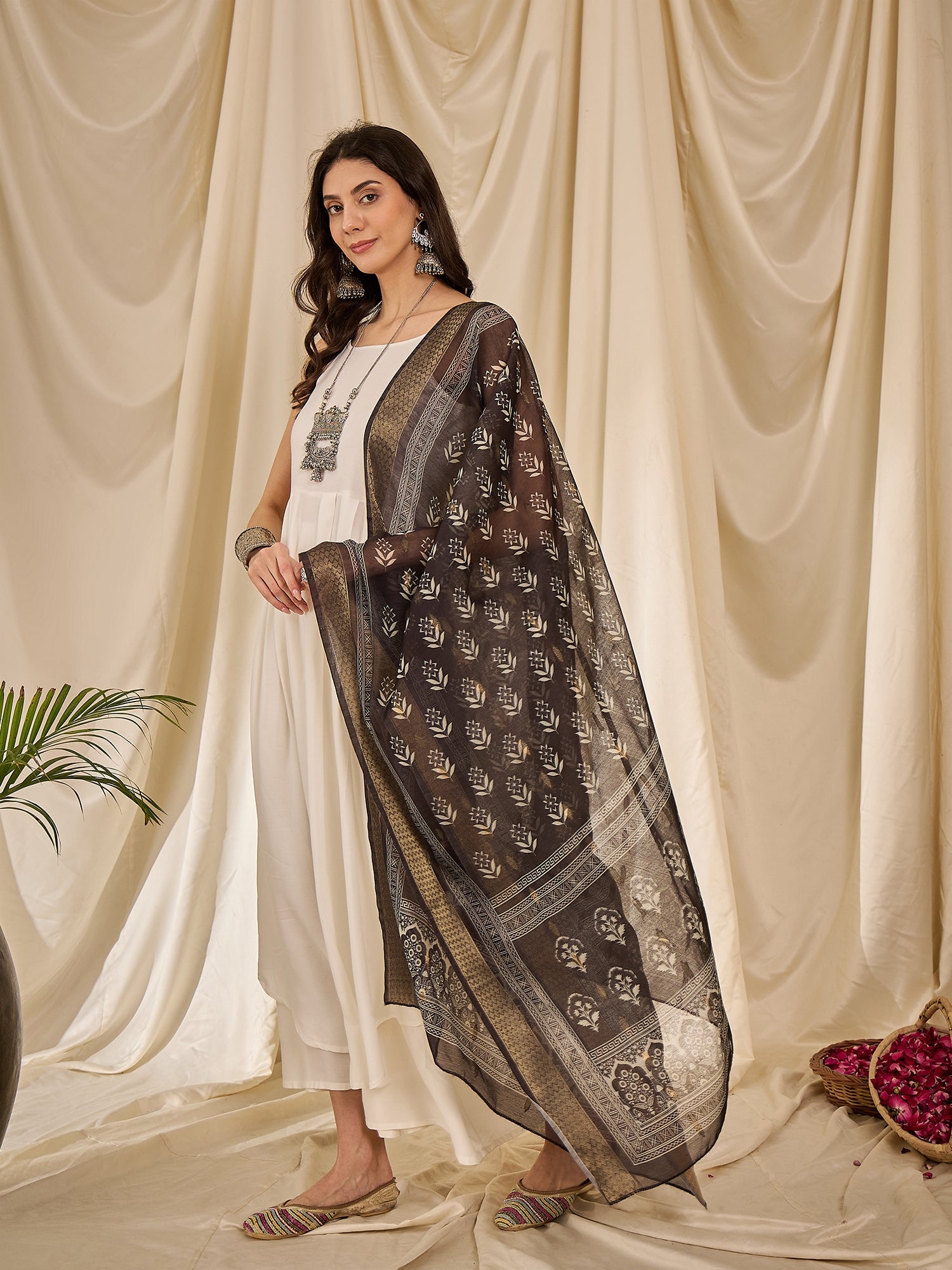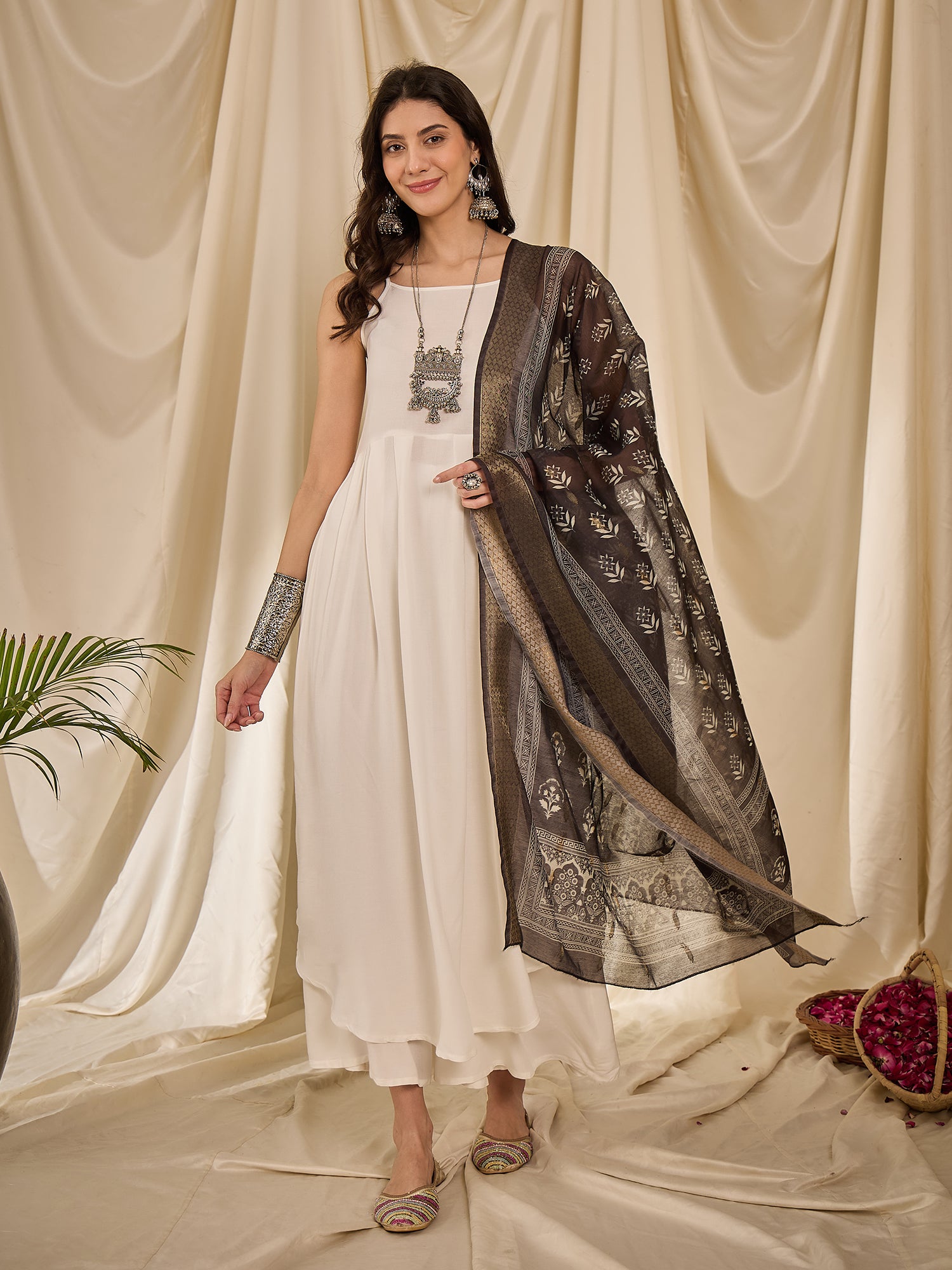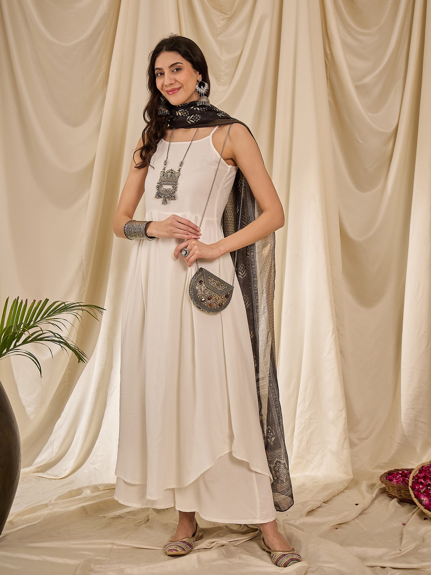 Placeholder White Strappy Black Beige Dupatta Set - InWeave