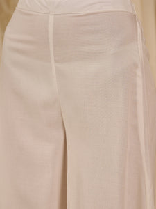 This set features a chic, sleeveless white kurta with a modern strappy design, offering a fresh and airy look. Paired with a vibrant dupatta adorned with intricate traditional patterns, it adds a pop of color and cultural flair.