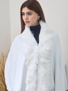 White Striped Fur Poncho