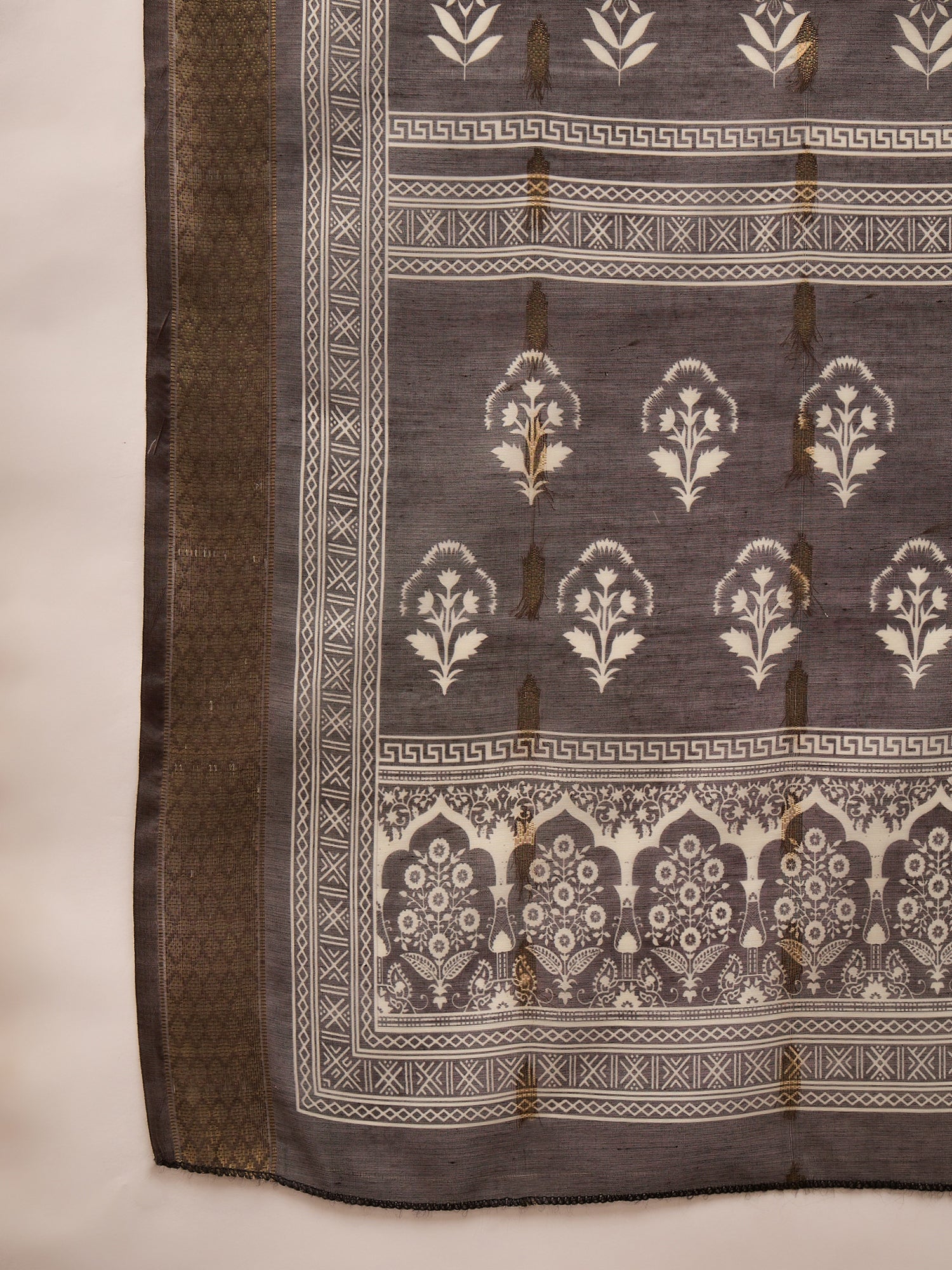 Placeholder White V Neck Flared Black Beige Dupatta Kurta Set - InWeave