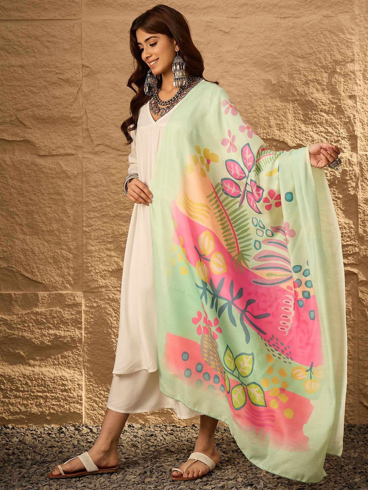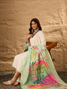 Placeholder White V Neck Flared Light Green Dupatta Kurta Set - InWeave