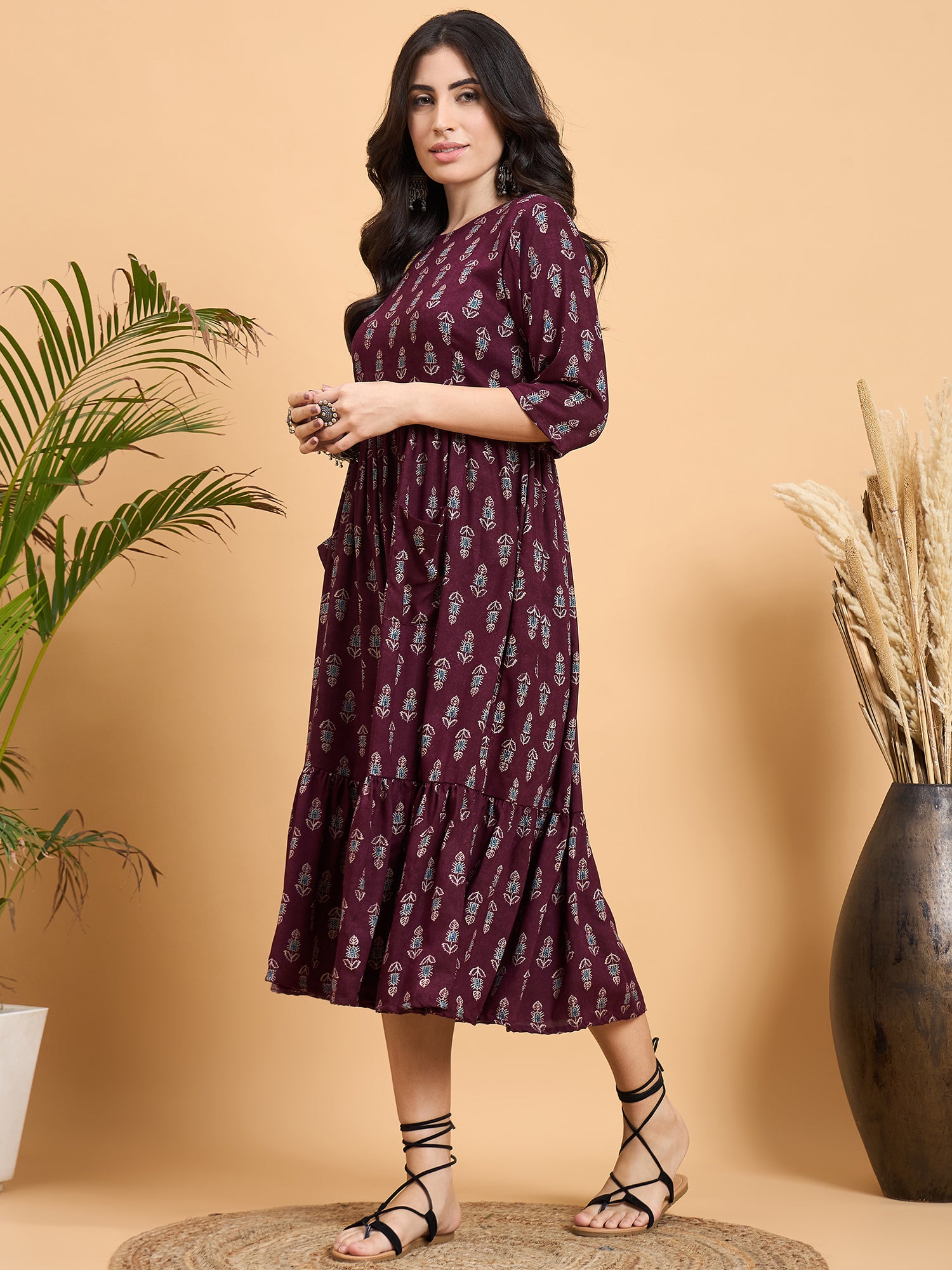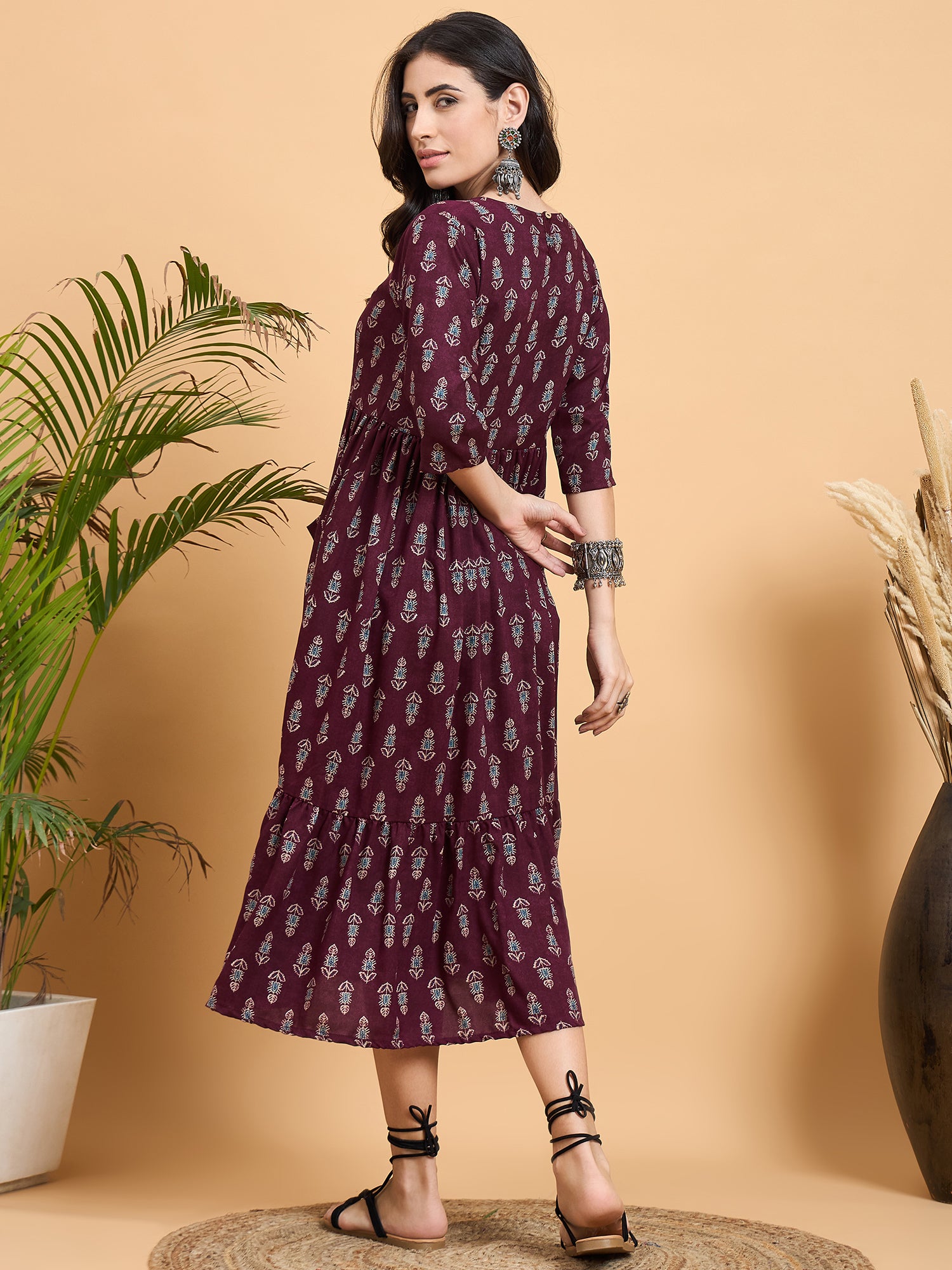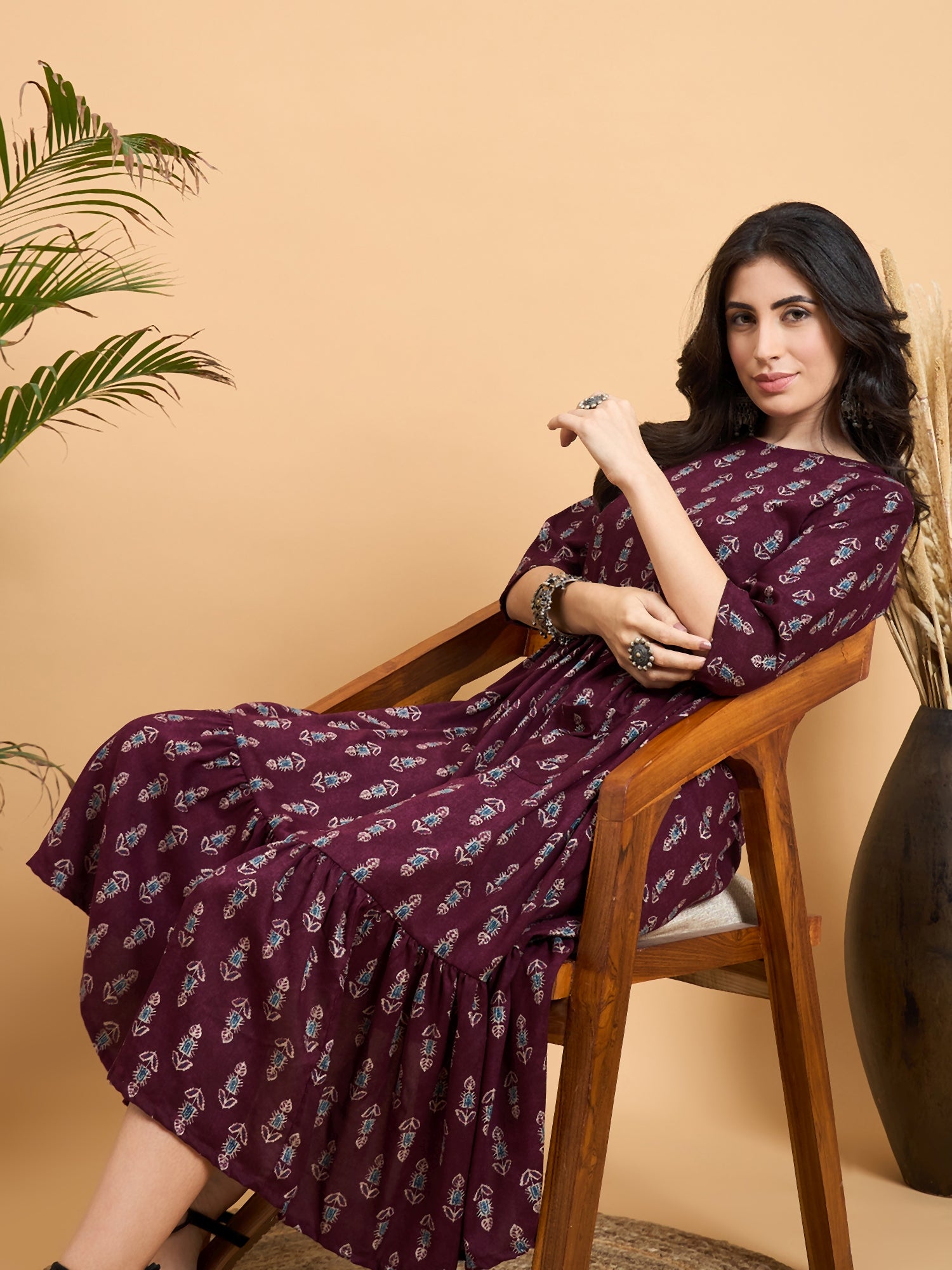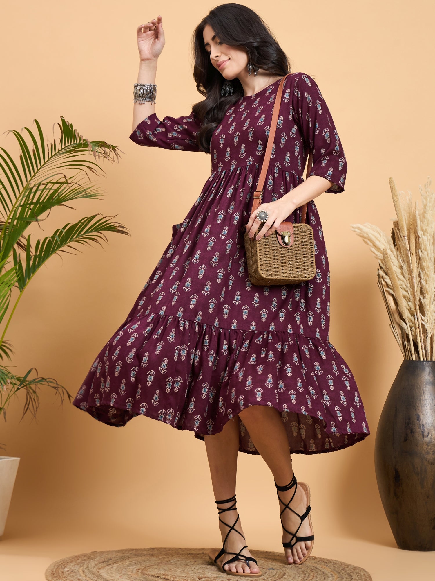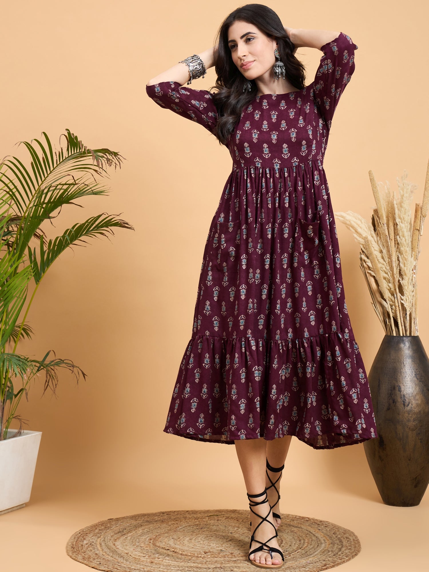 The Dress is crafted from best of Indian fabrics. Style it with Oxidised jewelery and juttis and you are good to go for any outing Hand Wash Only Seperately.