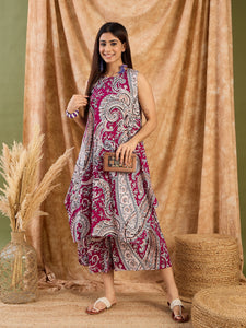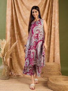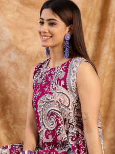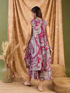 Warm and luxurious, the Wine Brown Paisley R Neck Kurta Set features traditional prints in deep tones, perfect for evening wear or festive occasions.