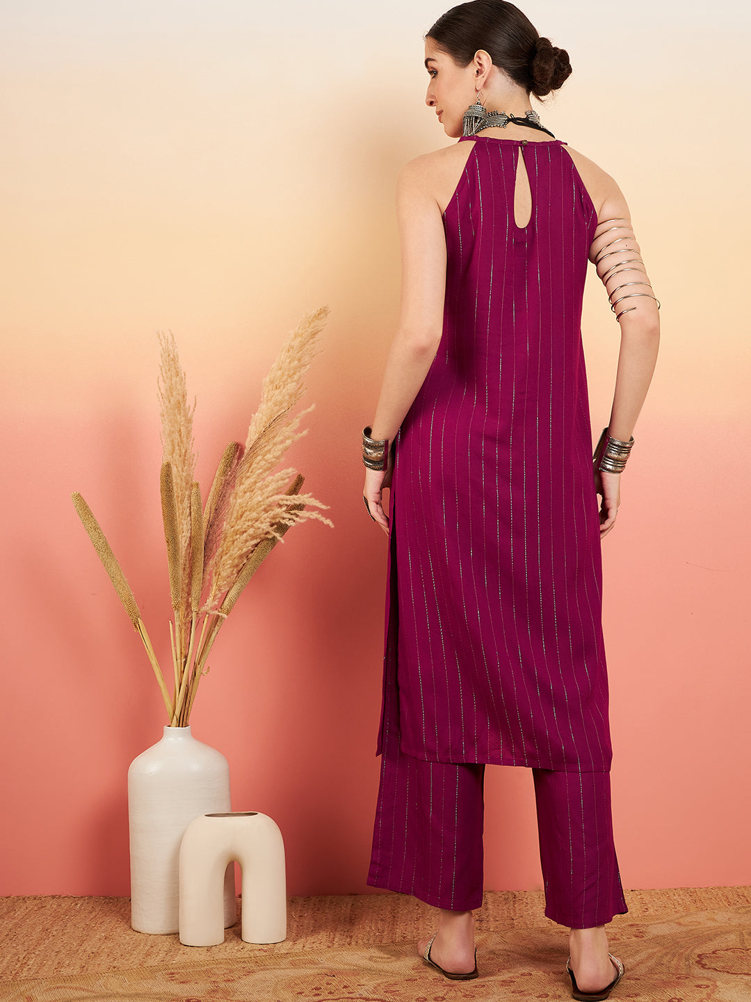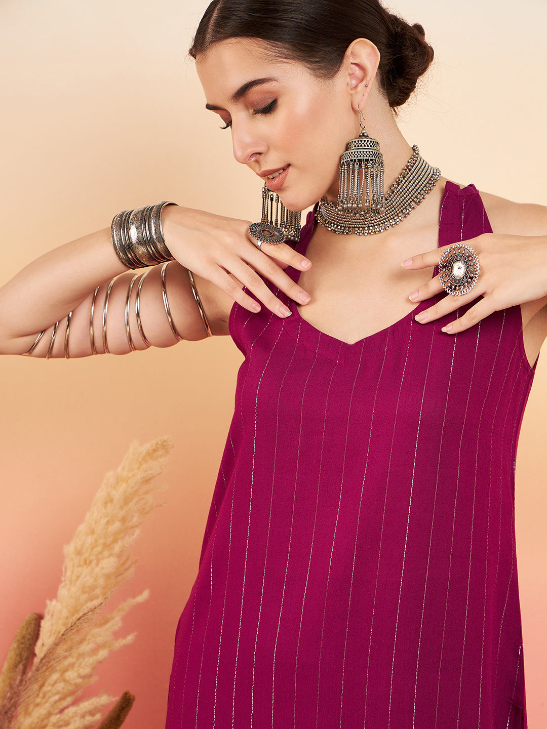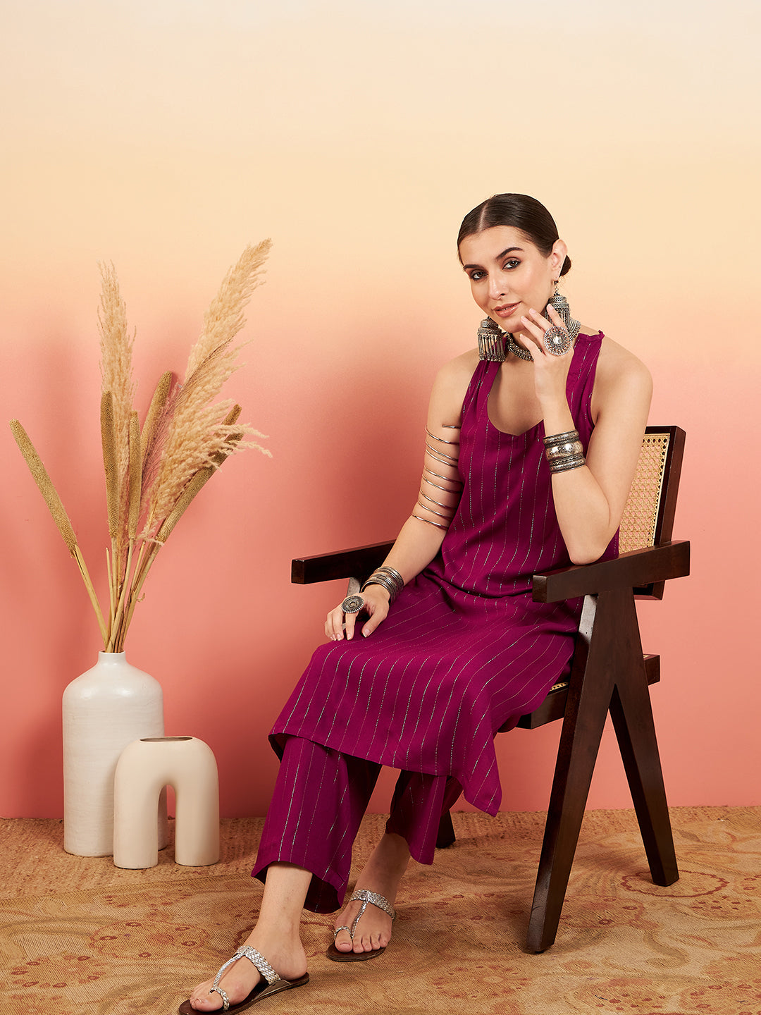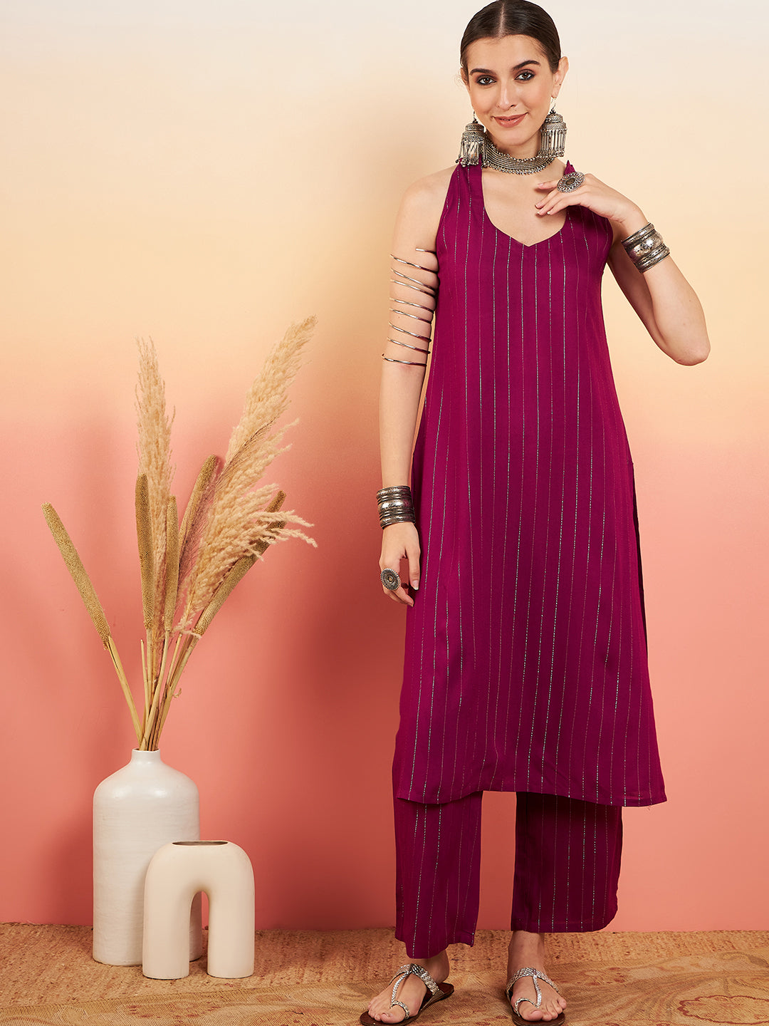 The Set is crafted from best of Indian fabrics. Style it with Oxidised jewelery and juttis and you are good to go for any outing Hand Wash Only Seperately.