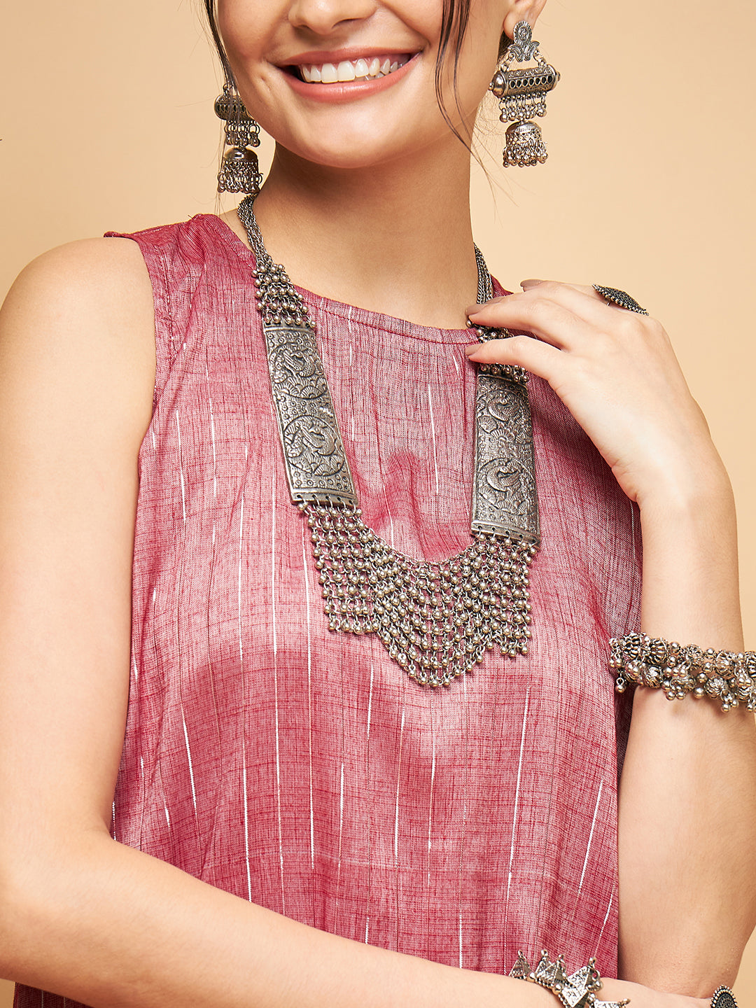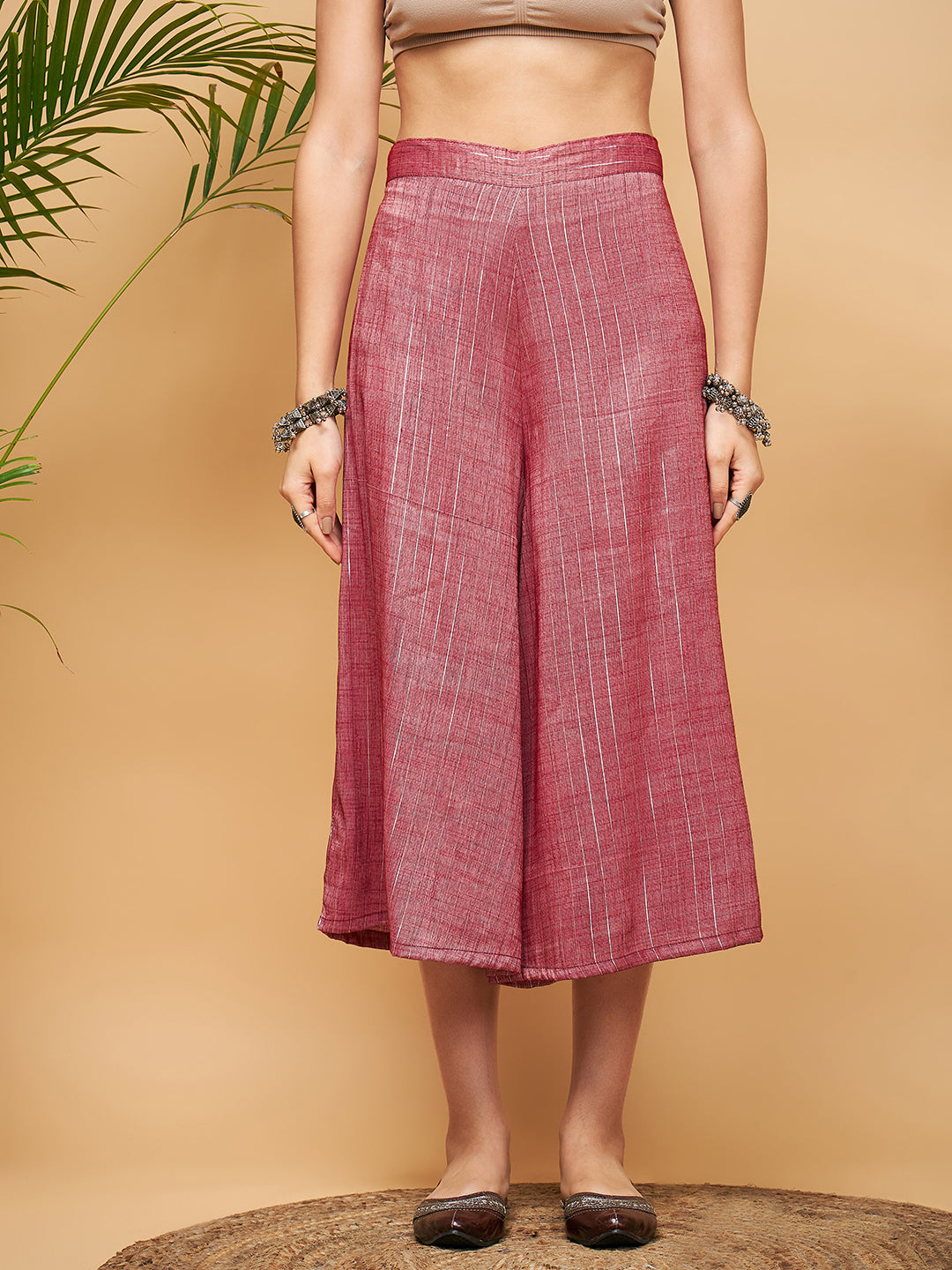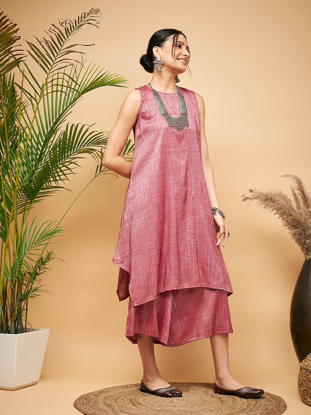 Placeholder Wine Lurex Short Pallazo Kurta Set - InWeave