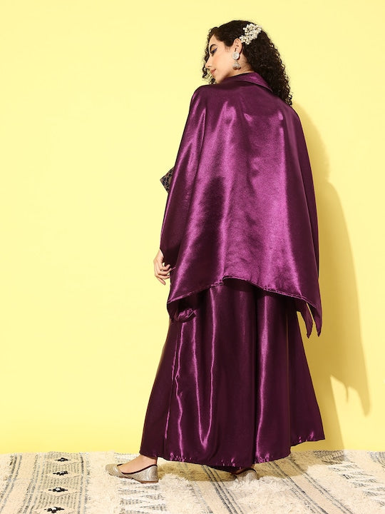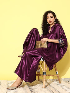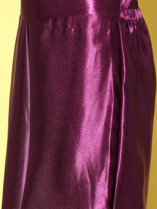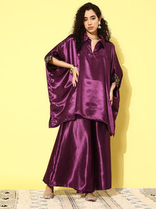 Wine Navy Brocade Satin Boho Kurta Palazzo Set