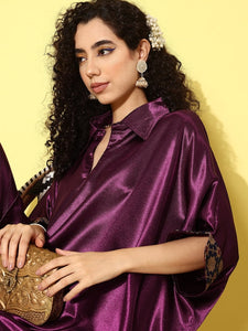 Placeholder Wine Navy Brocade Satin Boho Kurta Palazzo Set - InWeave