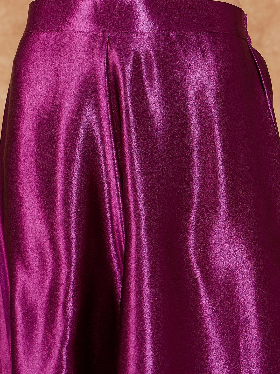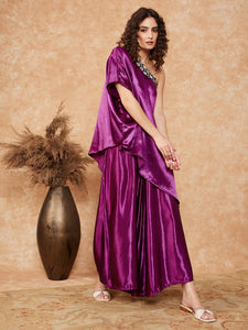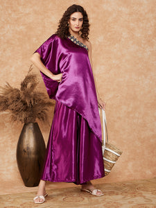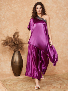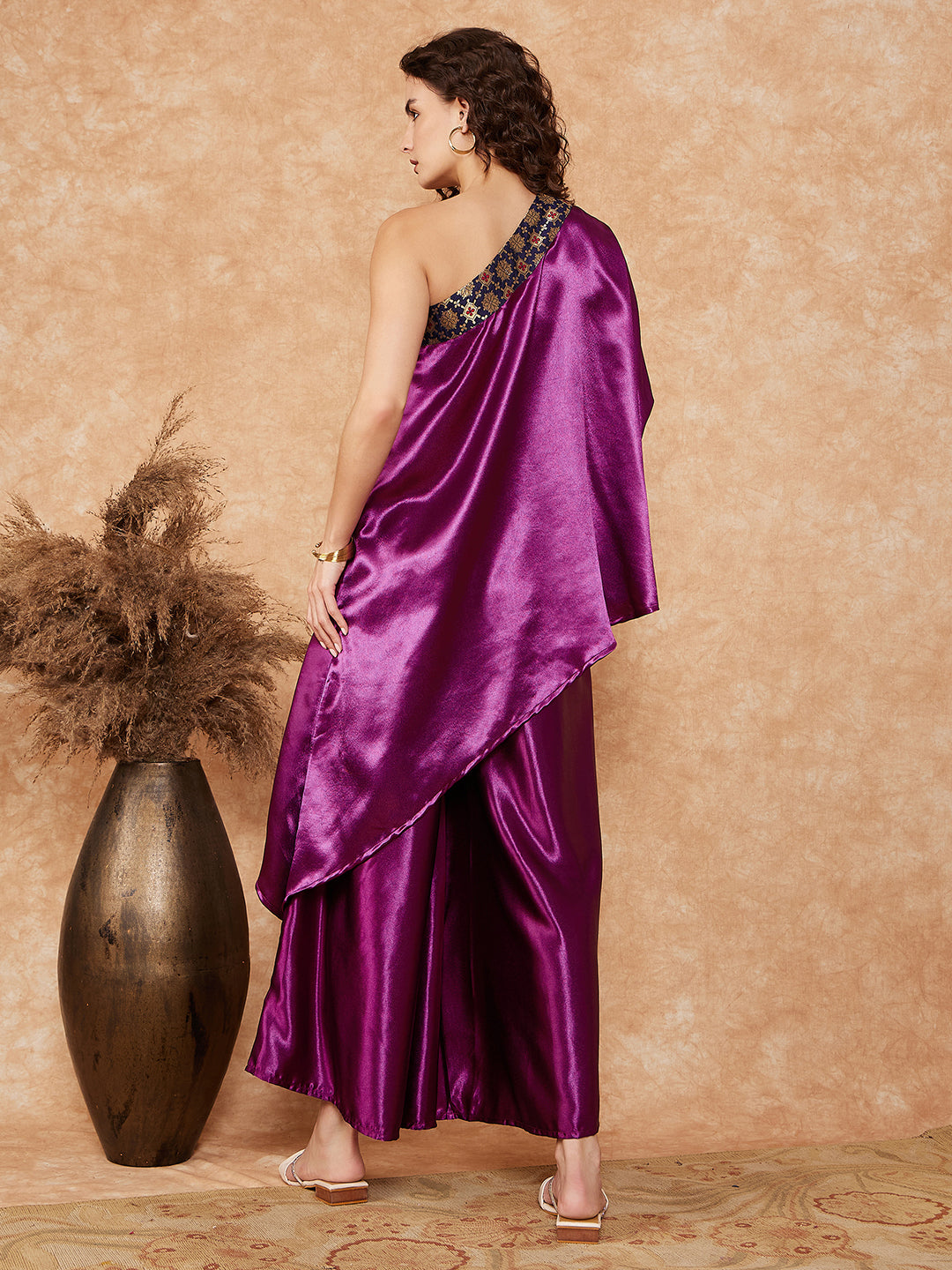 Wine Navy Brocade Satin Oneshoulder Kurta Set