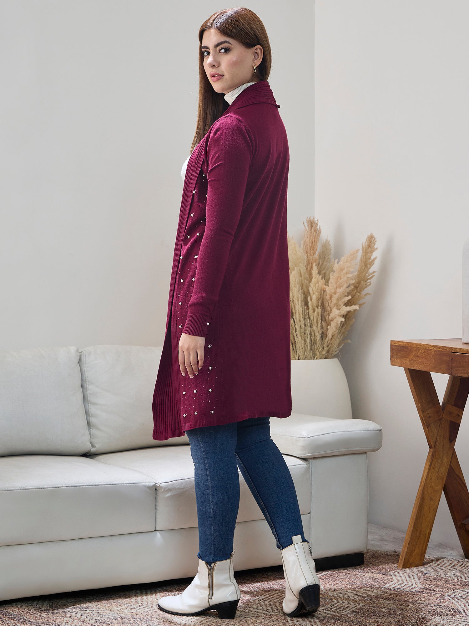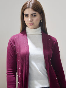 Wine white beaded shrug with intricate beadwork detailing elegant layering piece for evening wear.
