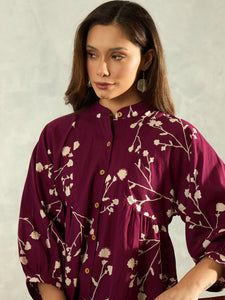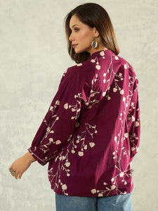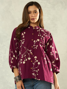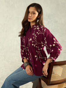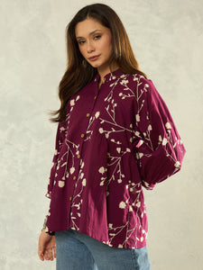 Elevate your everyday style with this Wine White Floral Band Neck Shirt, featuring an elegant floral print and a modern band neck design. Crafted from soft, breathable fabric, it offers a comfortable fit with a graceful silhouette, making it ideal for office wear and casual outings.