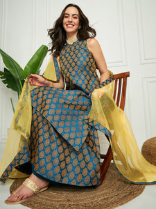 The Set is crafted from best of Indian fabrics. Style it with Oxidised jewelery and juttis and you are good to go for any outing Hand Wash Only Seperately.