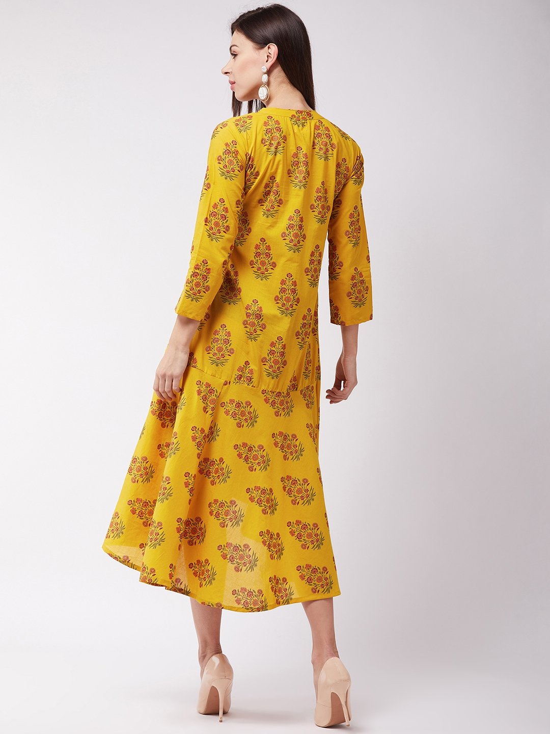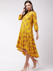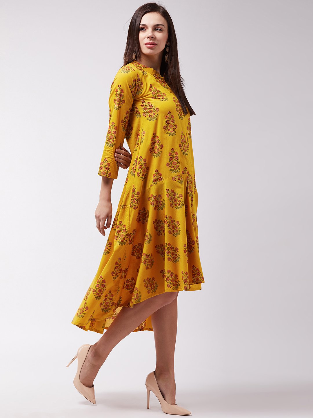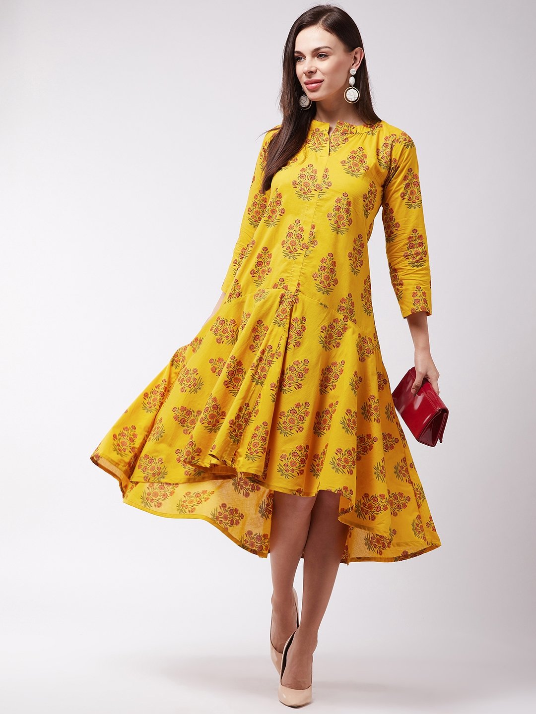 Our unique printed dress with asymmetric hem a style statement to own this season.Team it up with smart shoes and bag and stand apart Fabric used for Upper : Cotton. Hand Wash Only Seperately.