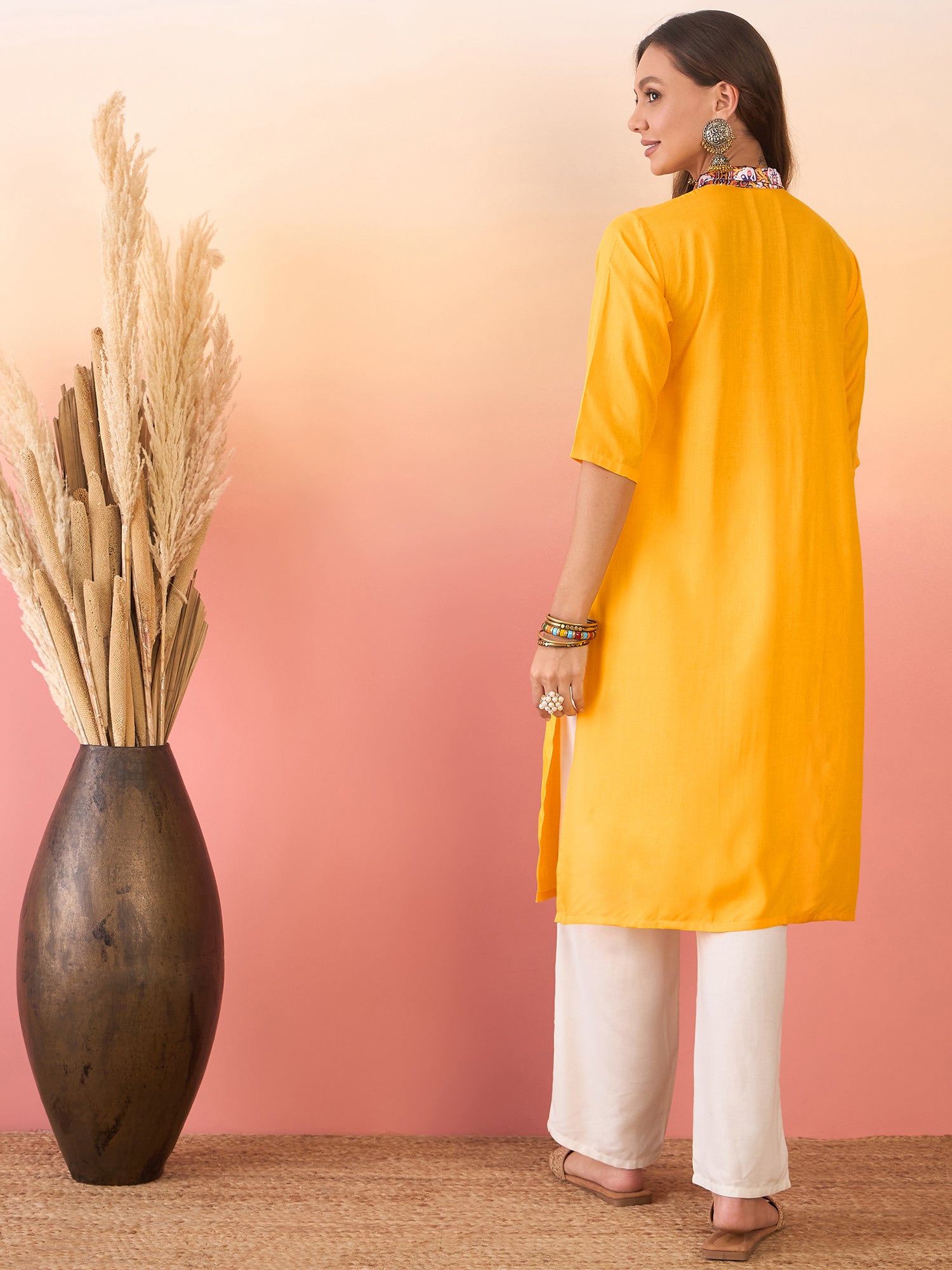 The kurta is crafted from best of Indian fabrics. Style it with Oxidised jewelery and juttis and you are good to go for any outing Hand Wash Only Seperately.